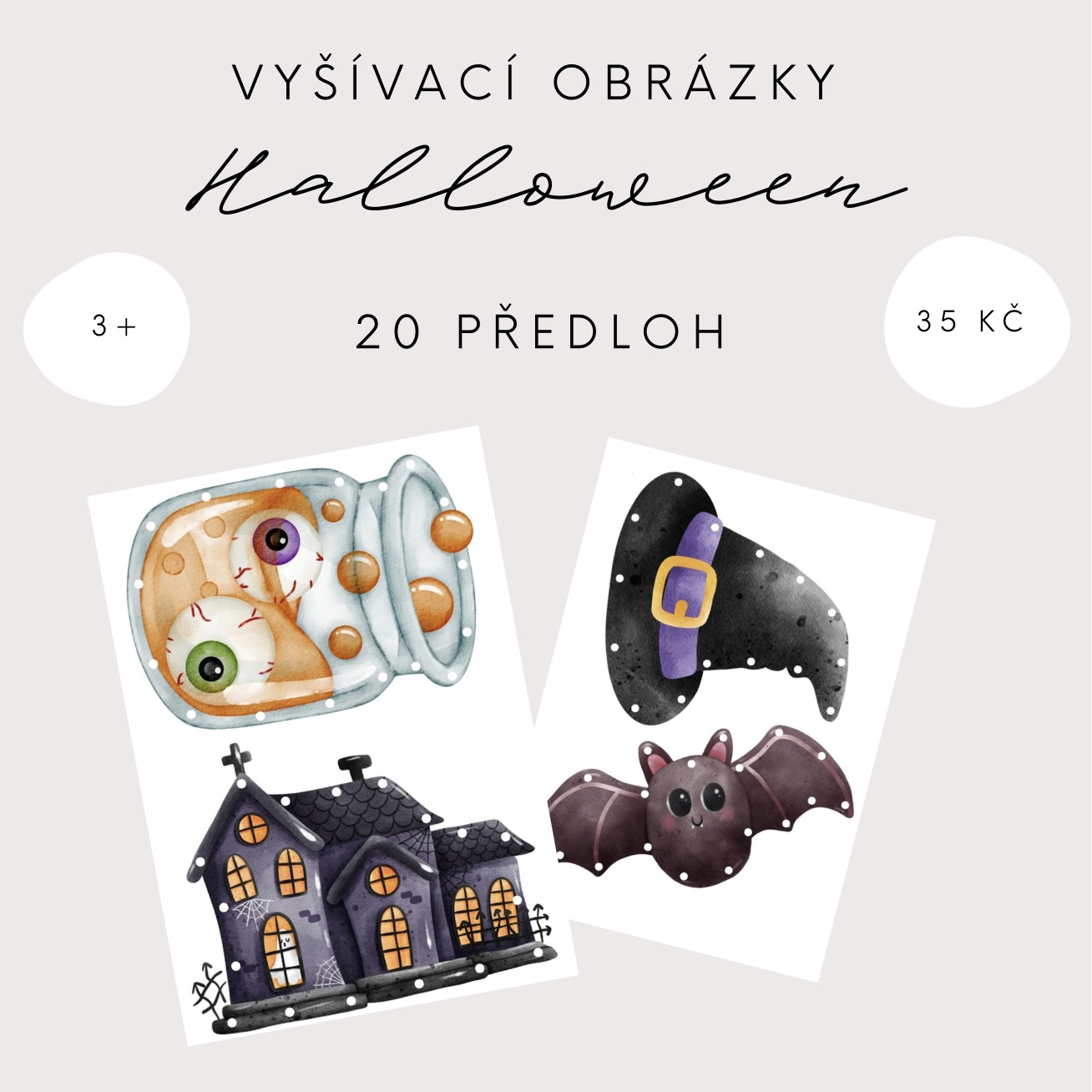 Představujeme Vám náš soubor vyšívacích obrázků na téma Halloween, který je určen především pro děti předškolního věku. V materiálu najdete 20 obrázků, po jejichž obvodu jsou vyznačené puntíky pro vytvoření dírek.