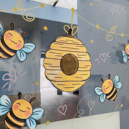 Obsah výzdoby: 4 včelky, 5 ptáčků, 3 motýlci, 8 květin, 12 lístků, 1 úl, 5 budek. Vše si můžete nakopírovat podle potřeby.