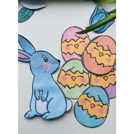 Soubor obsahuje sadu velikonočních motivů (zajíčci, kraslice, kuřátka, květiny a velikonoční košíček), které jsou připravené jako oboustranná výzdoba – ideální do oken, na provázky i na zeď. Každý motiv je navržen tak, aby byl dobře viditelný z obou stran a děti zaujal veselými barvami a roztomilými ilustracemi.