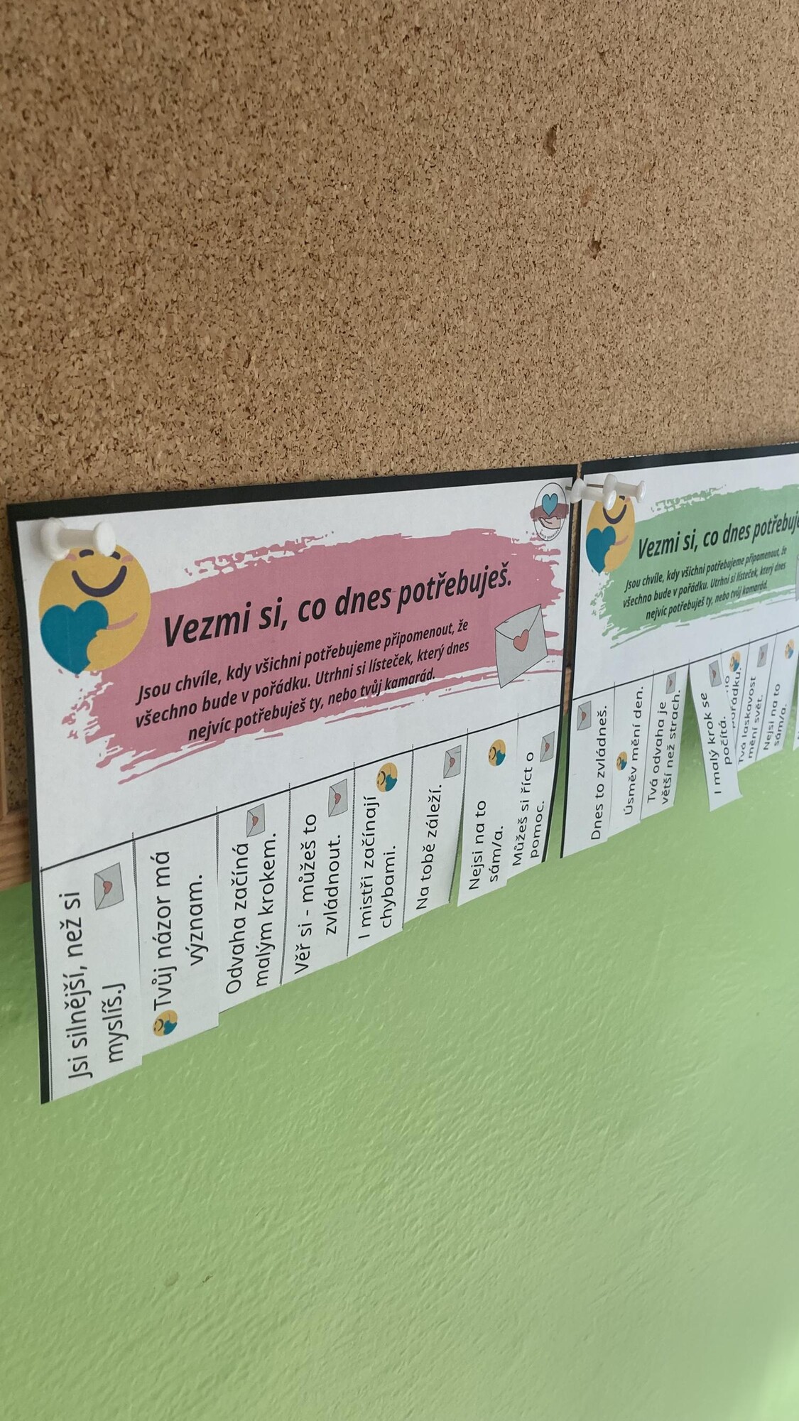 - Plakátky s trhacími vzkazy – krátké, motivační a laskavé vzkazy, které si může každý utrhnout a věnovat sobě nebo kamarádovi.