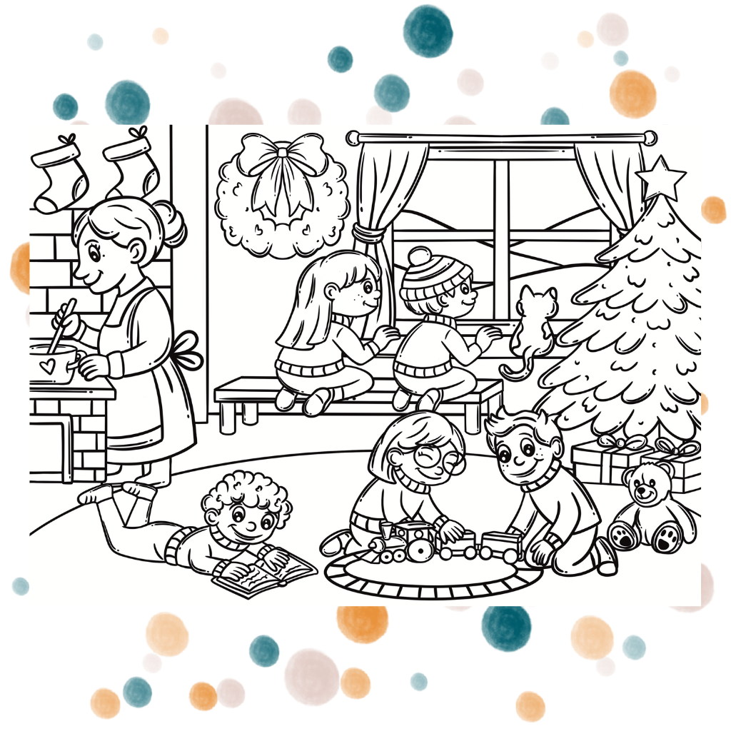 Tato autorská XXL omalovánka na téma Vánoce je ideální jako společný výtvarný projekt do školky, družiny nebo i domů. Na děti čeká scéna vánočních radovánek!