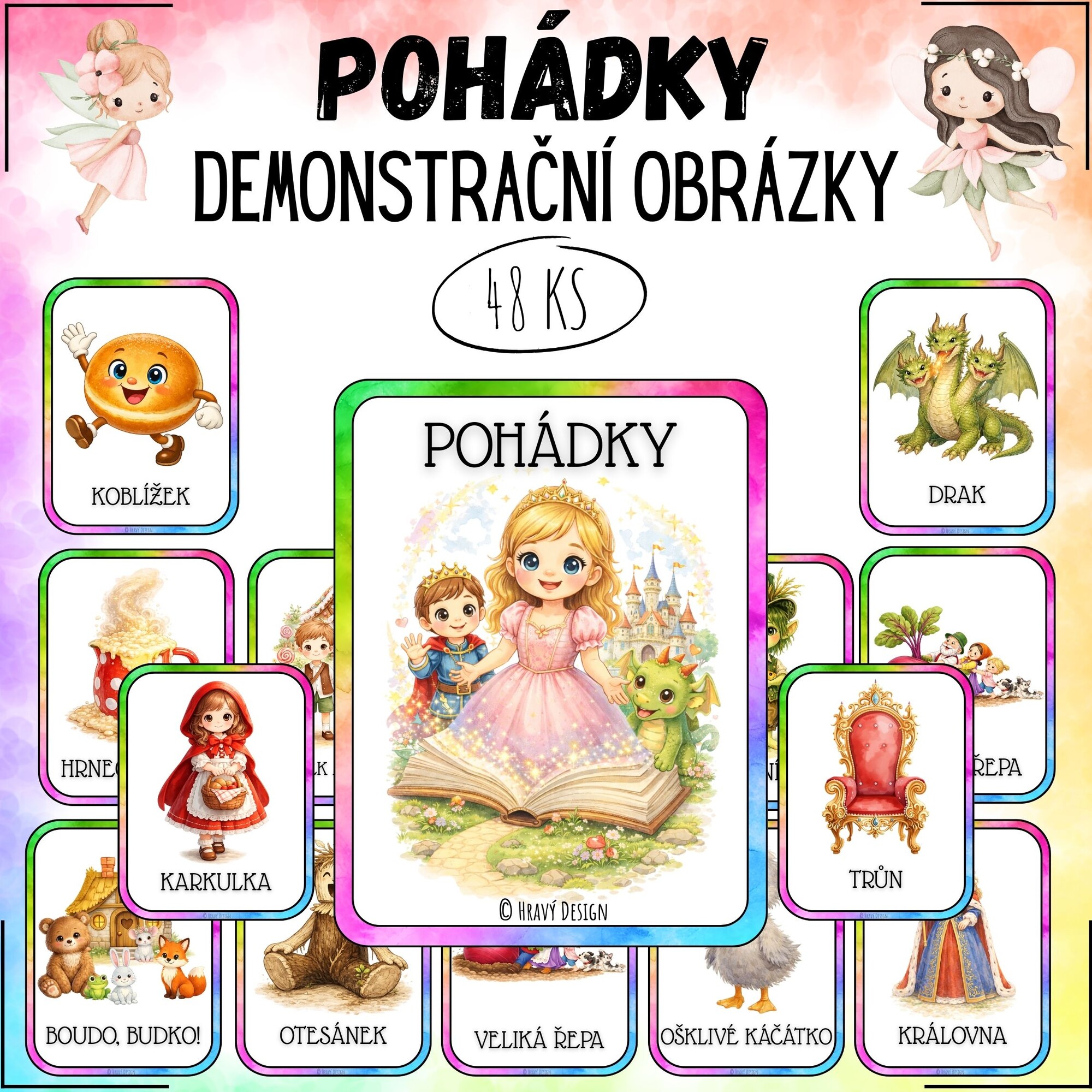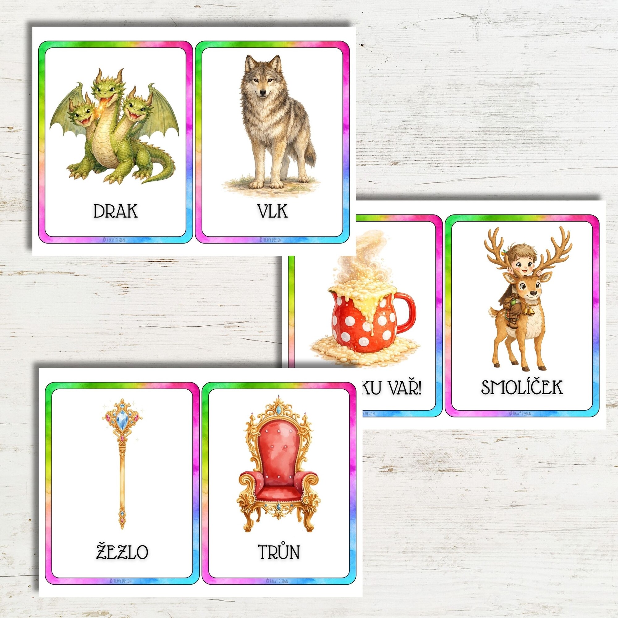 Děti se díky demonstračním kartám seznámí s daným tématem, osvojí si nové pojmy a rozšíří slovní zásobu. Kartičky slouží jako vizuální pomůcka při výuce.