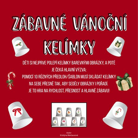 Hledáte novou hru, která děti zabaví a zároveň rozvíjí důležité dovednosti? Vyzkoušejte materiál "ZÁBAVNÉ KELÍMKY" s roztomilými VÁNOČNÍMI obrázky!