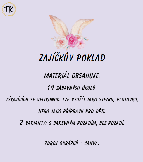 MATERIÁL OBSAHUJE: 14 zábavných úkolů týkajících se Velikonoc. Děti si zábavným způsobem procvičí zrakové i sluchové vnímání, předčtenářské a předmatematické dovednosti i všeobecné znalosti o svátcích jara.