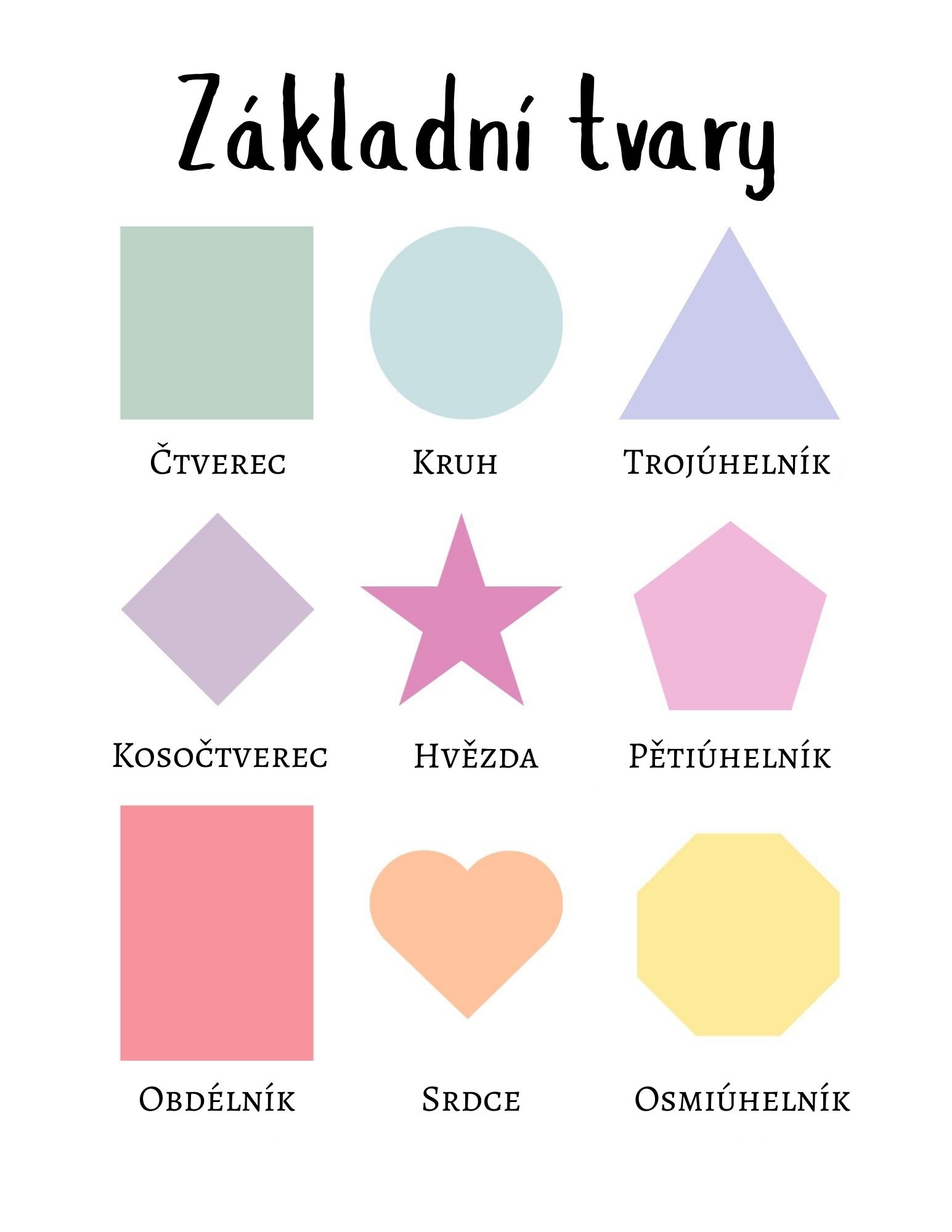 Soubor obsahuje 9 barevných přehledů pro předškolní děti, které lze využít ve školce i při domácím učení.