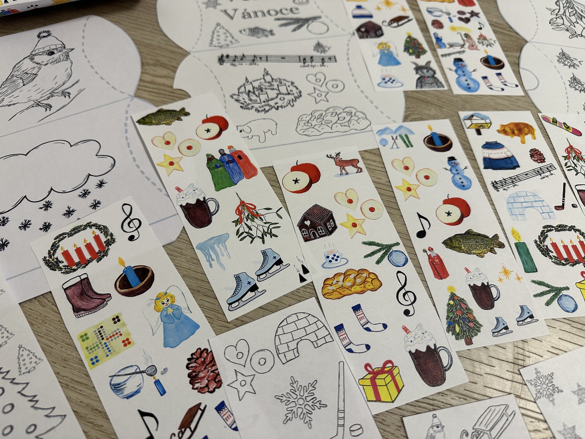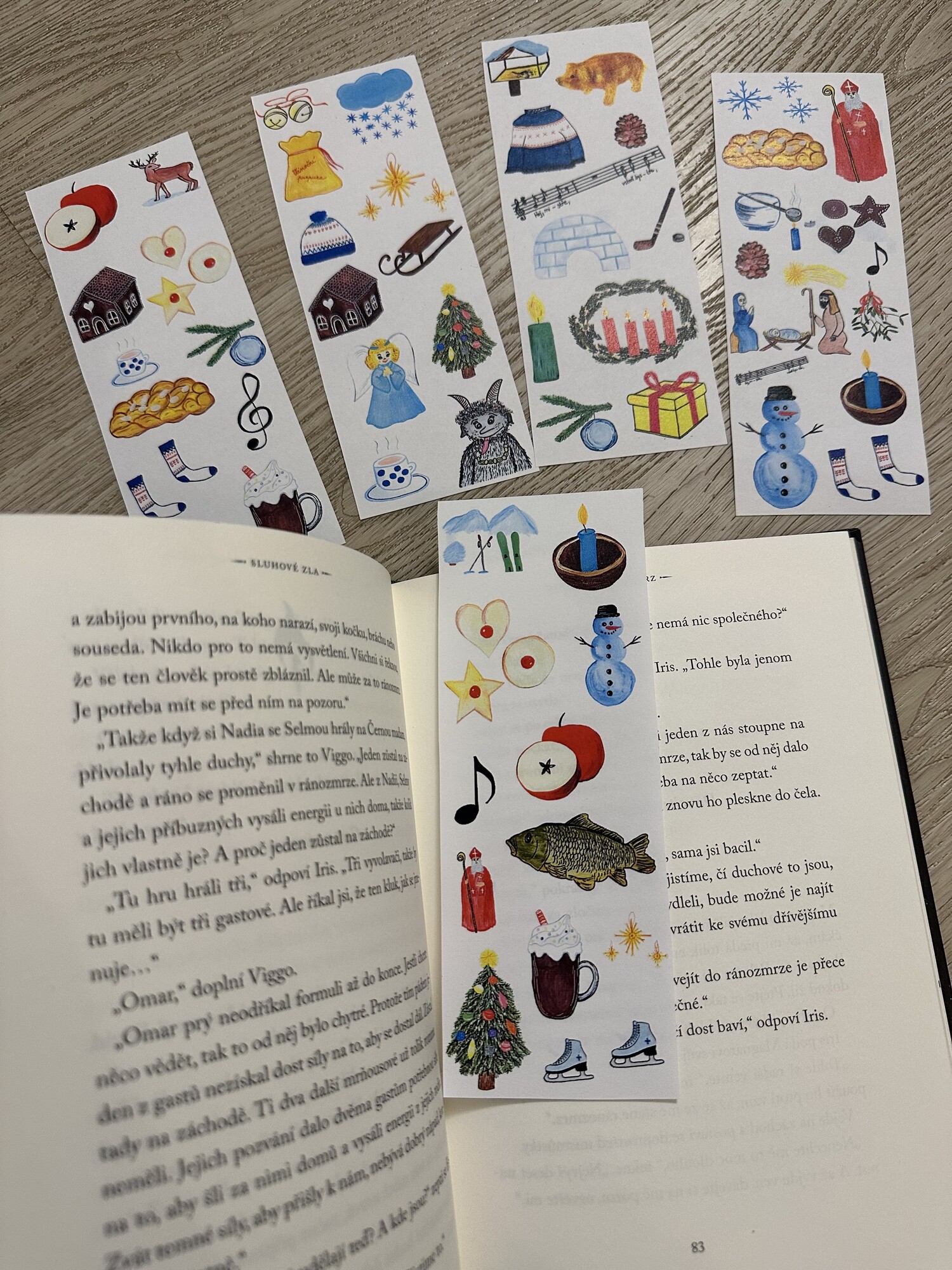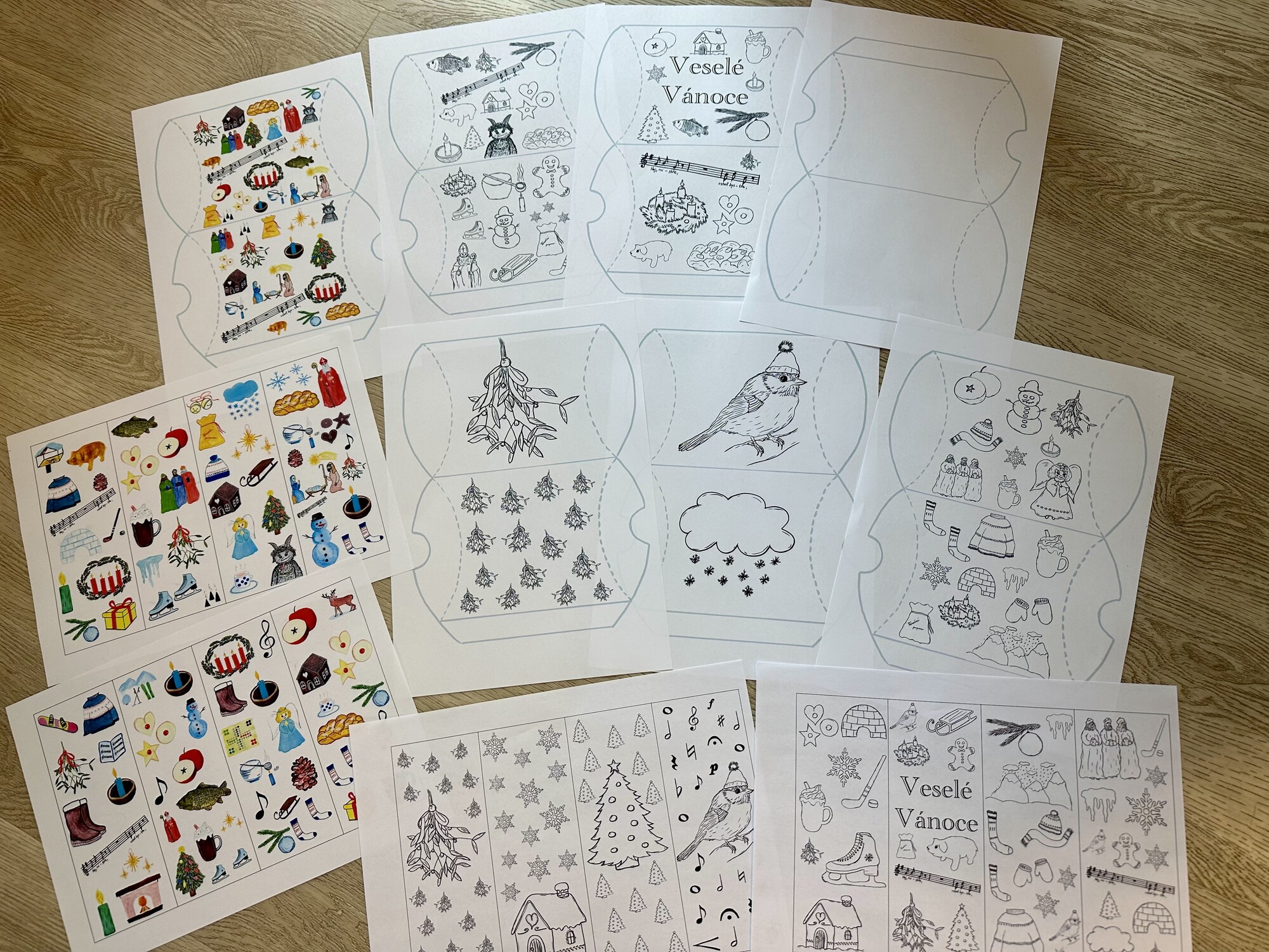Materiál obsahuje 11 A4 stran. 16 kusů záložek - různé motivy, 6 krabiček - různé motivy. Jedna prázdná šablona k výrobě krabičky.