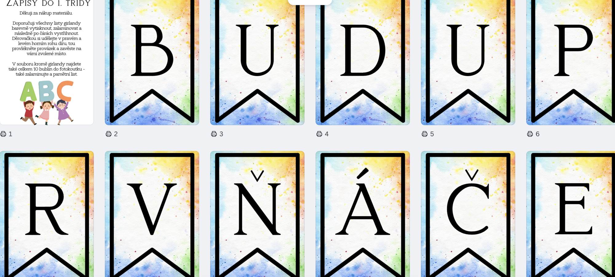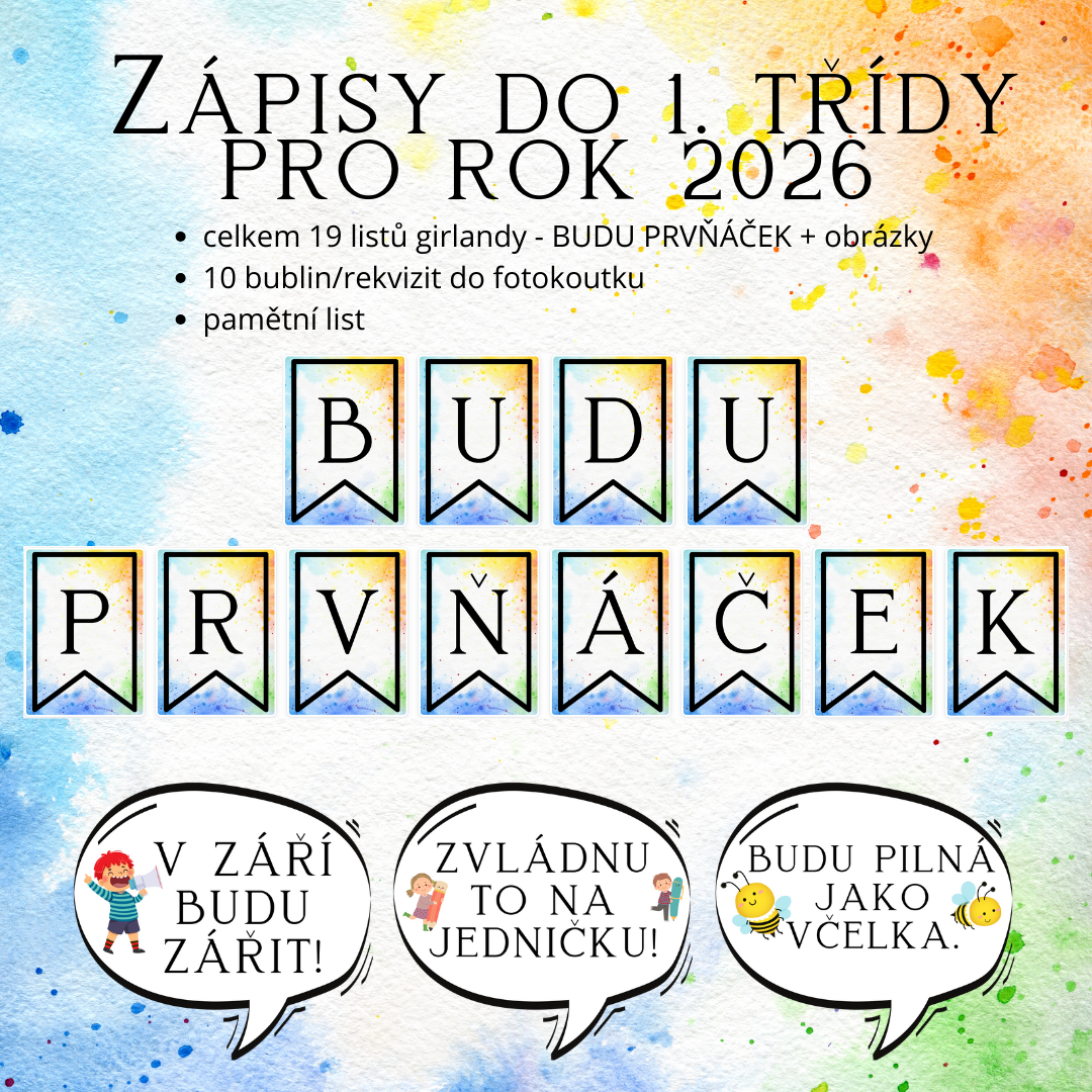 - 19 listů girlandy - BUDU PRVŇÁČEK + obrázky