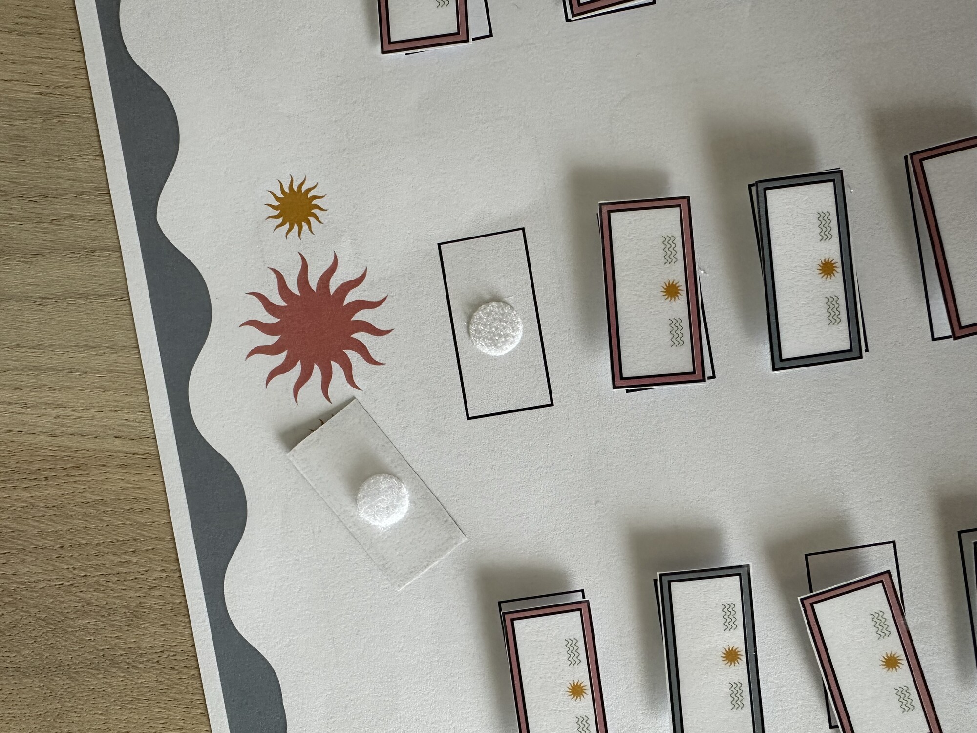 - K materiálu jsou připraveny jmenovky, na které si můžete napsat jména žáků: buď před zalaminováním, nebo zalaminovat prázdné jmenovky a psát jména až na zalaminovaný povrch (můžete je měnit podle potřeby).