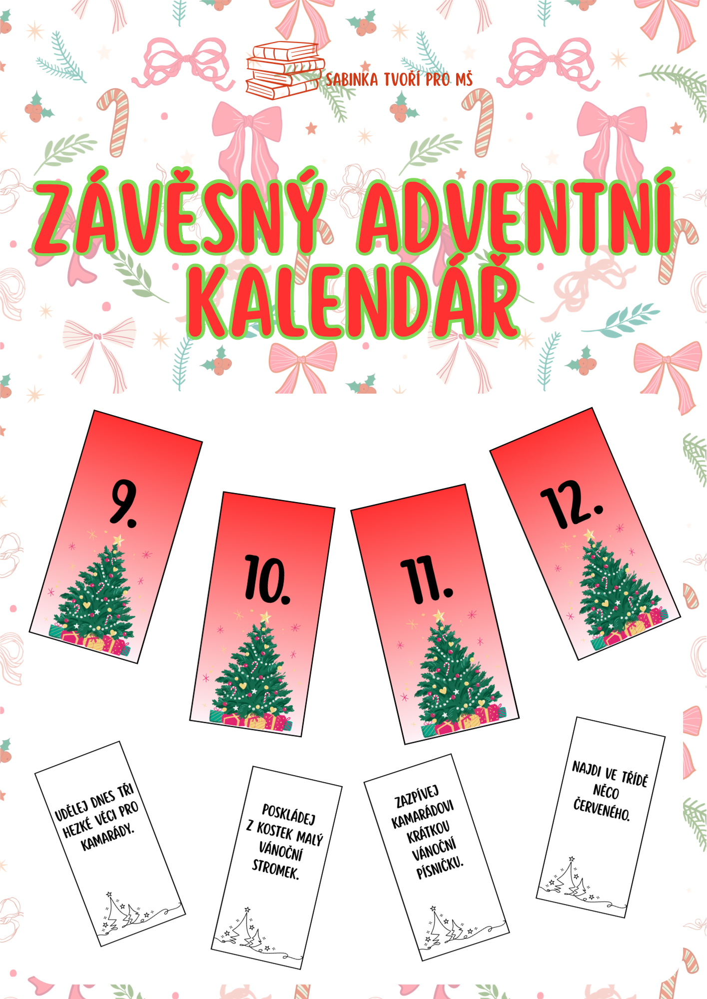 Připravila jsem závěsný adventní kalendář – girlandu, ve které najdete 24 vlaječek, a na každé z nich je jeden zábavný úkol pro děti v MŠ.