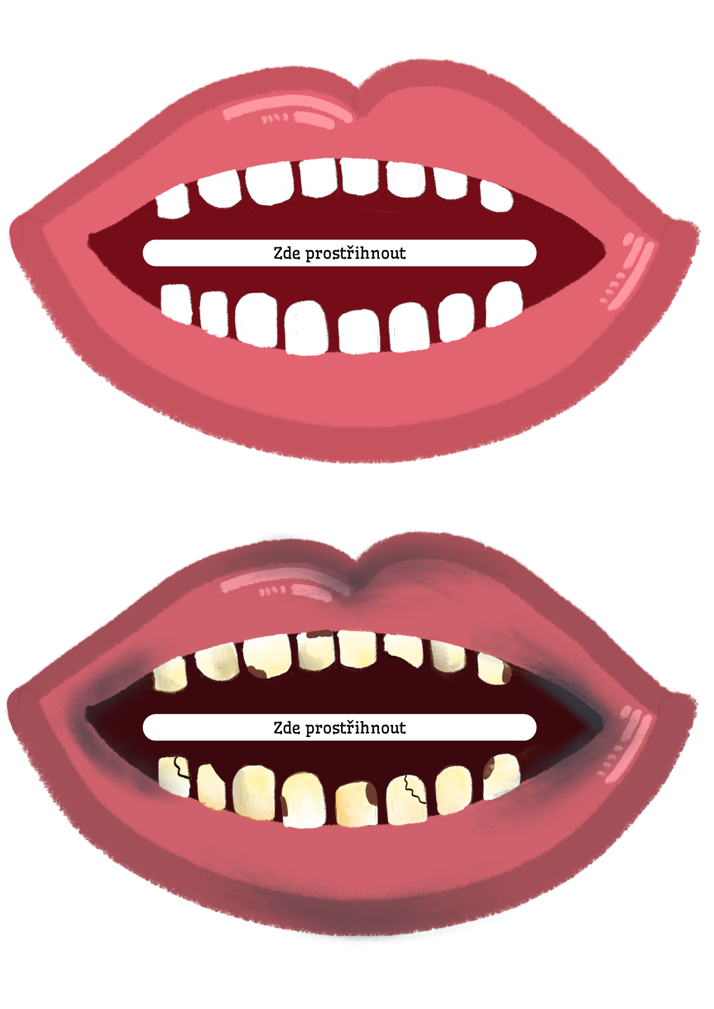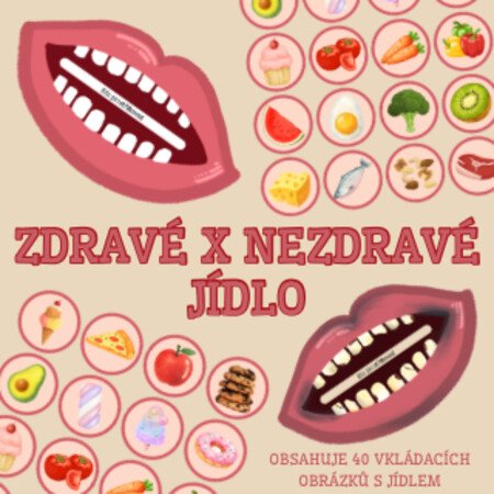 Didaktický materiál zaměřený na zdravé stravování a péči o zuby. Děti třídí obrázky potravin do pusy se zdravými a poškozenými zuby podle toho, zda je jídlo zdravé, nebo nezdravé. Aktivita hravou formou rozvíjí logické myšlení, třídění, slovní zásobu a vede děti k uvědomění si souvislosti mezi stravou a zdravím.
