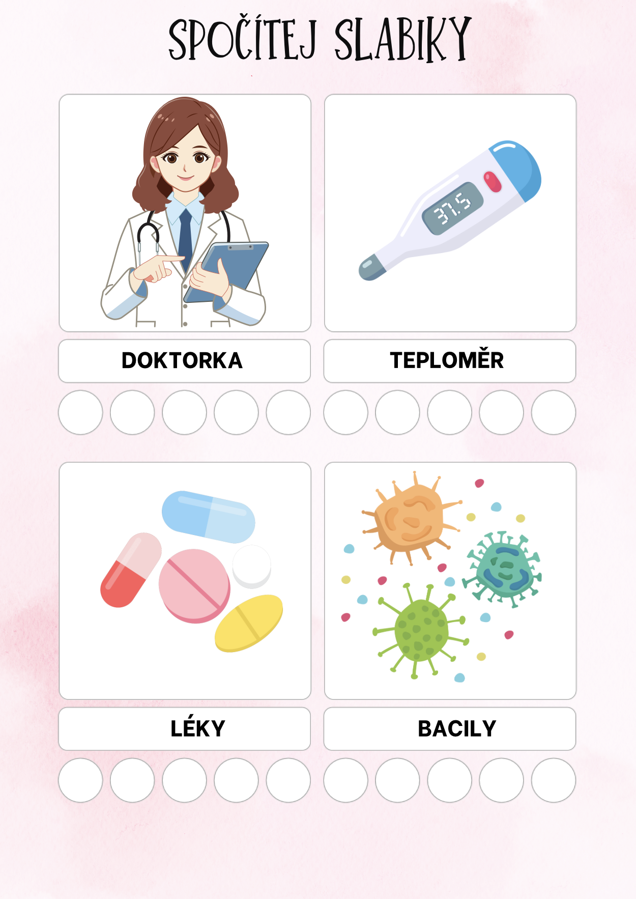 💡 Ideální pro práci v MŠ – jednotlivě i jako ucelený tematický blok o zdraví, nemoci a hygieně.