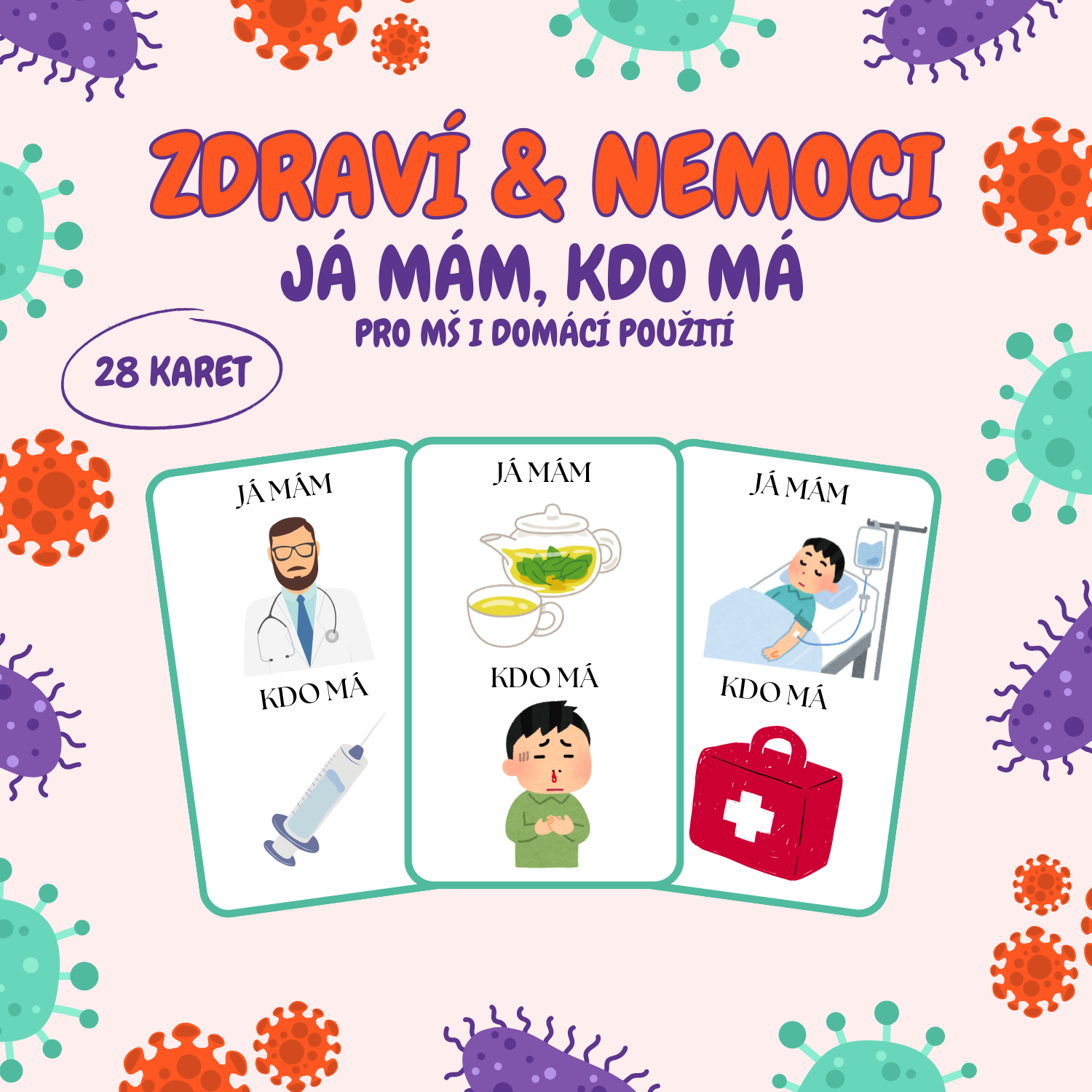 Hledáte promyšlený, hravý a pestrý materiál, který děti nejen zabaví, ale také je něco naučí? Přináším vám hru já mám, kdo má na téma zdraví a nemoci, která vám ušetří čas a usnadní práci.