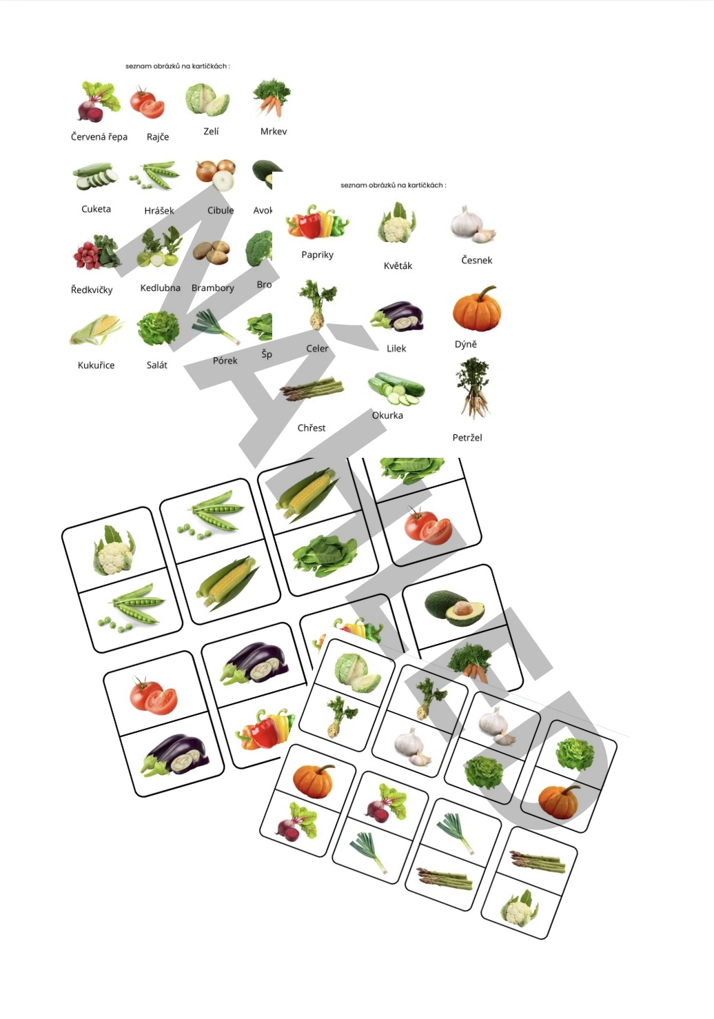obsah : kartičky pro hru "já mám, kdo má ..." + seznam co je na kartičkách za obrázky