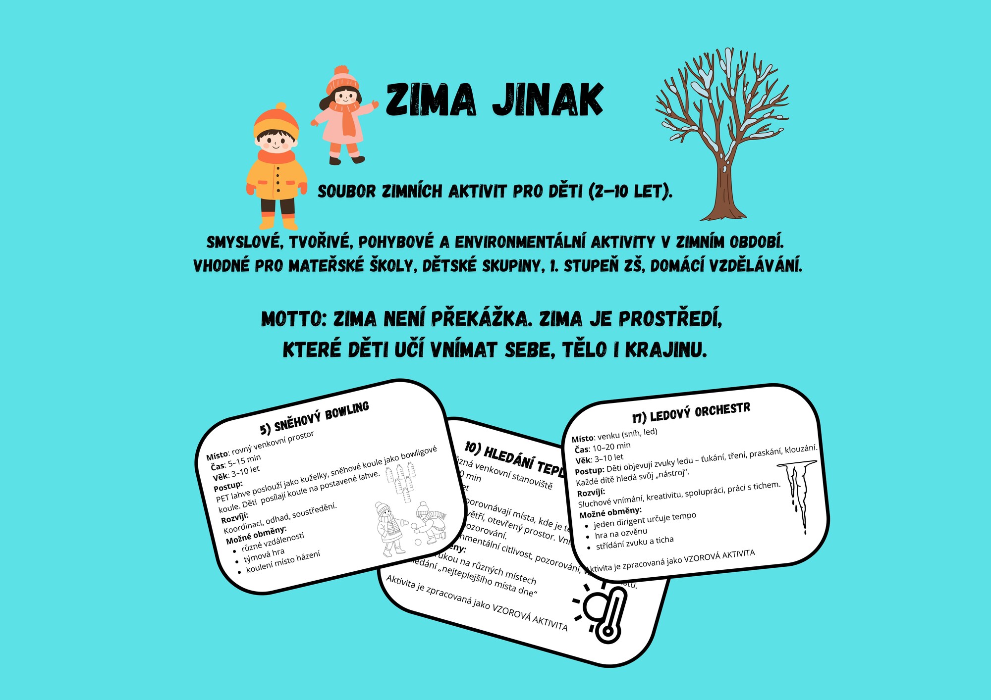 - 20 aktivit, které jdou za hranici běžných zimních her (některé z nich většina pedagogů pravděpodobně nezná), + možné obměny