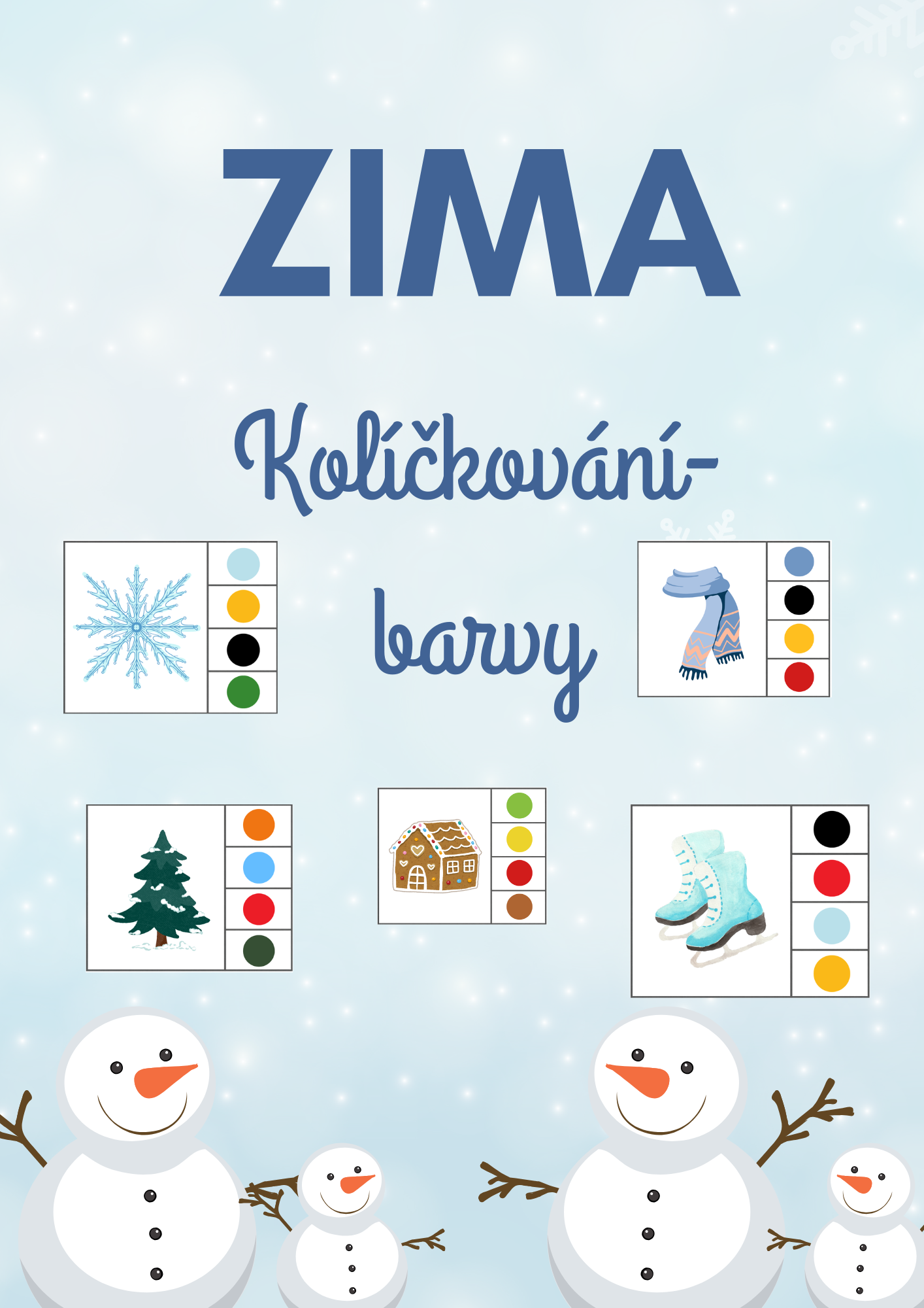 Zima Kolíčkování PDF soubor, celkem 16 kartiček