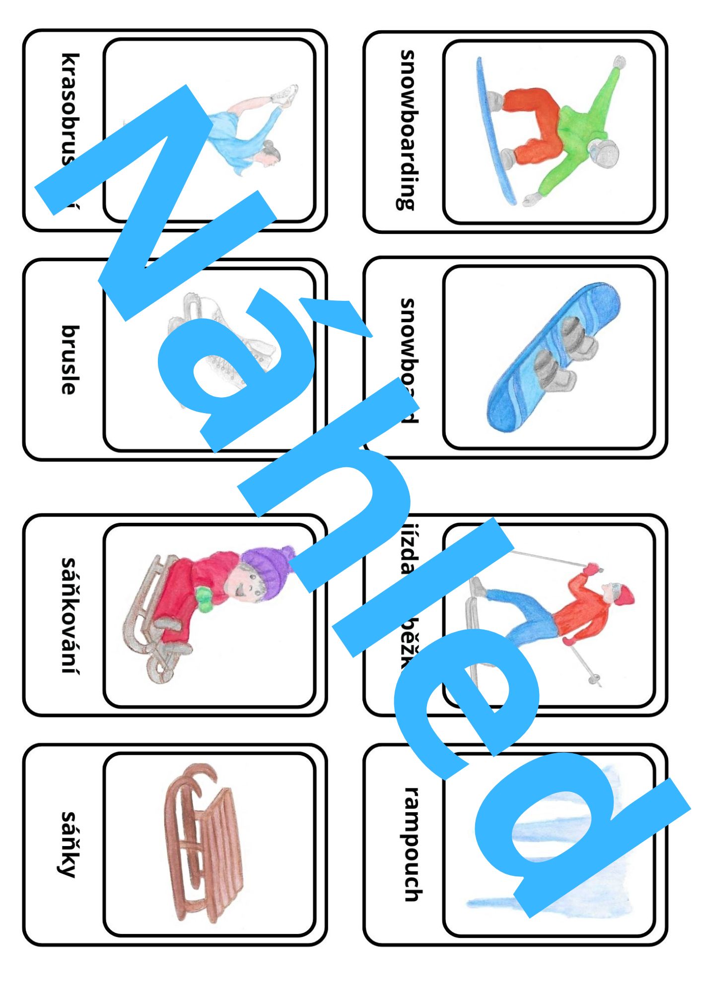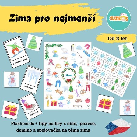 Sada aktivit na téma zima obsahuje flashcards, domino, pexeso, spojovačky a manuál. V manuálu najdete tipy na aktivity s flashcards a jak pracovat se spojovačkami.