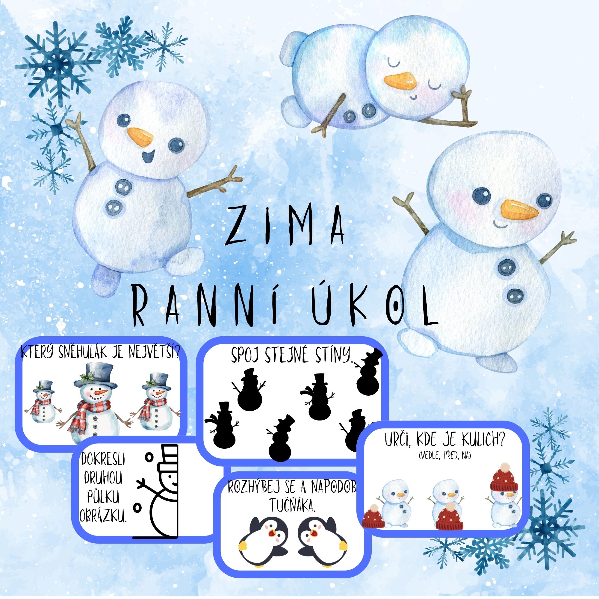 Ranní úkol představuje krátkou, časově nenáročnou aktivitu, která je tematicky provázána s denním programem. Jejím cílem je podpořit rozvoj vybraných dovedností dětí a zároveň usnadnit jejich plynulý přechod z rodinného do školního prostředí. Součástí ranního úkolu je spolupráce dítěte s rodičem, která napomáhá upevňovat vztah mezi rodinou a školou. Aktivita současně slouží k motivaci dítěte a k jeho naladění na činnosti, které ho během dne čekají.