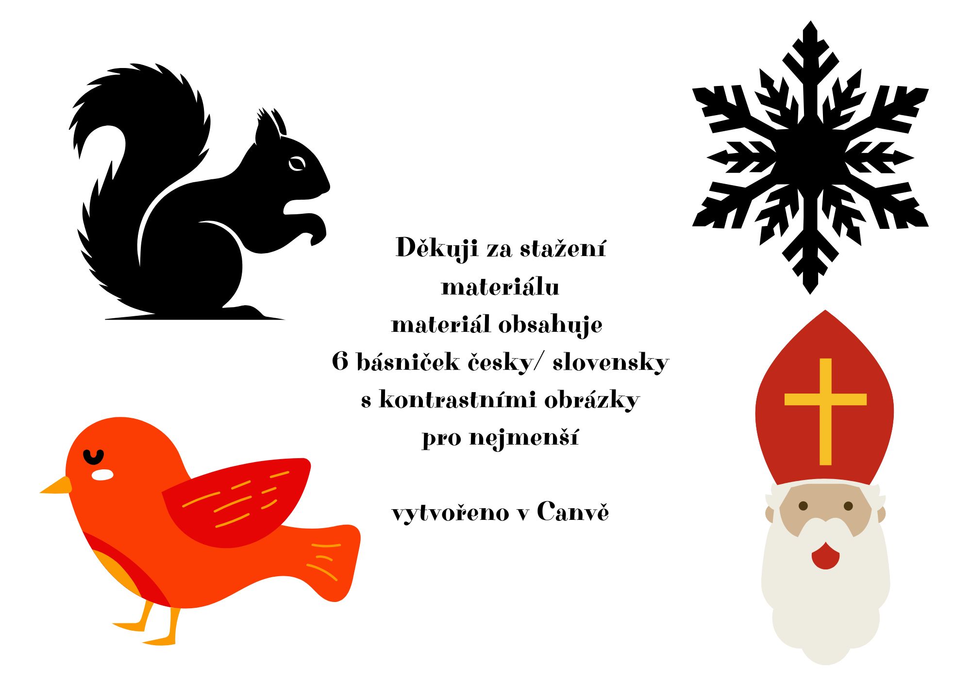 materiál obsahuje6 básniček česky/ slovenskys kontrastními obrázkypro nejmenší vytvořeno v Canvě