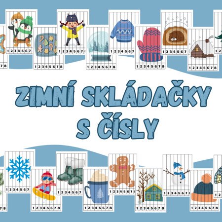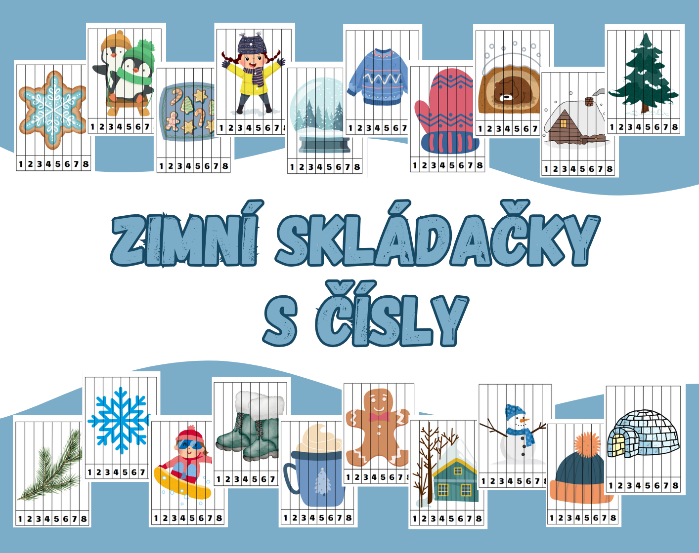 - sadu 20 skládaček s čísly s krásnými motivy zimy