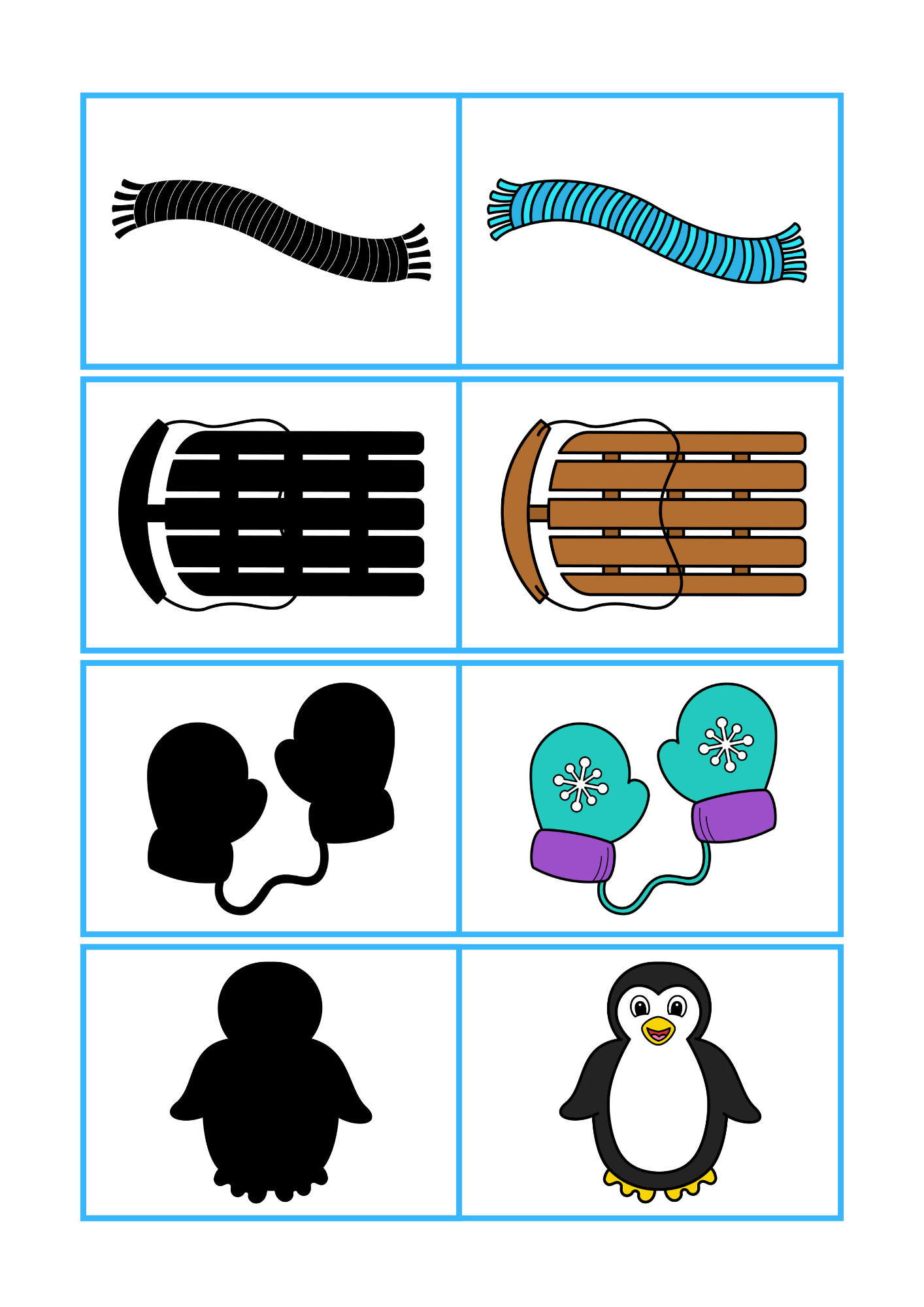 - barevné obrázky + odpovídající černé stíny