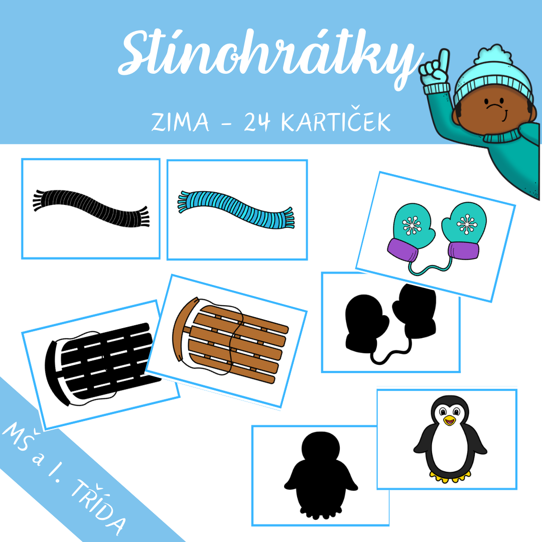 - 12 dvojic zimních obrázků = 24 kartiček