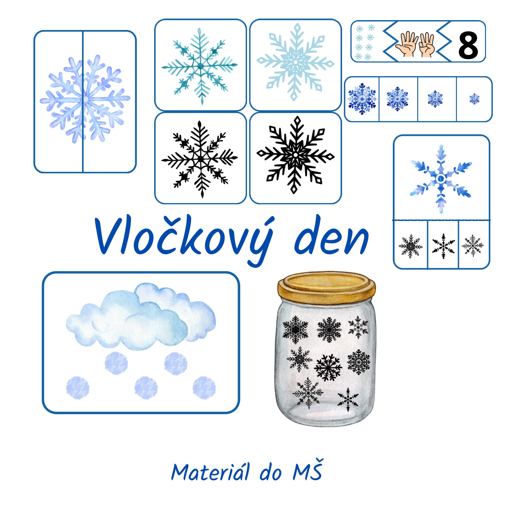 Vločkový zážitkový den je ucelený vzdělávací materiál pro mateřské školy, který děti provází zimním světem vloček prostřednictvím her, objevování a smyslových aktivit.Materiál rozvíjí zrakovou orientaci, jemnou motoriku, logické myšlení, předmatematické představy i soustředění, a zároveň děti přirozeně zapojuje do činnosti hrou.