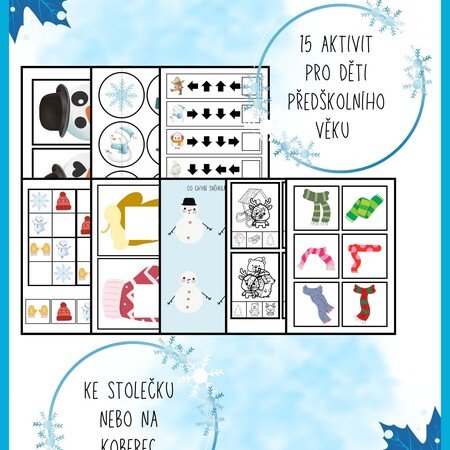 Materiál obsahuje 15 aktivit, které jsou zaměřeny na ZIMNÍ OBDOBÍ. Děti se tak zábavnou formou vzdělávají v důležitých oblastech pro správný vývoj v předškolním věku.