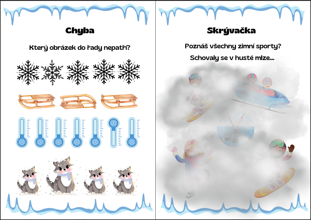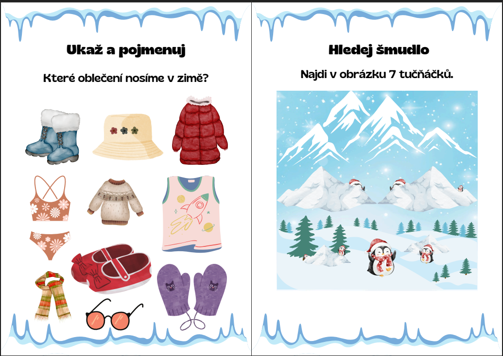 Tento soubor obsahuje nečíslované úkoly různého druhu. Hledání, vytleskávání, hádání apod. Lze využít i při řízené činnosti, ranní/odpolední individuální práci s dětmi.