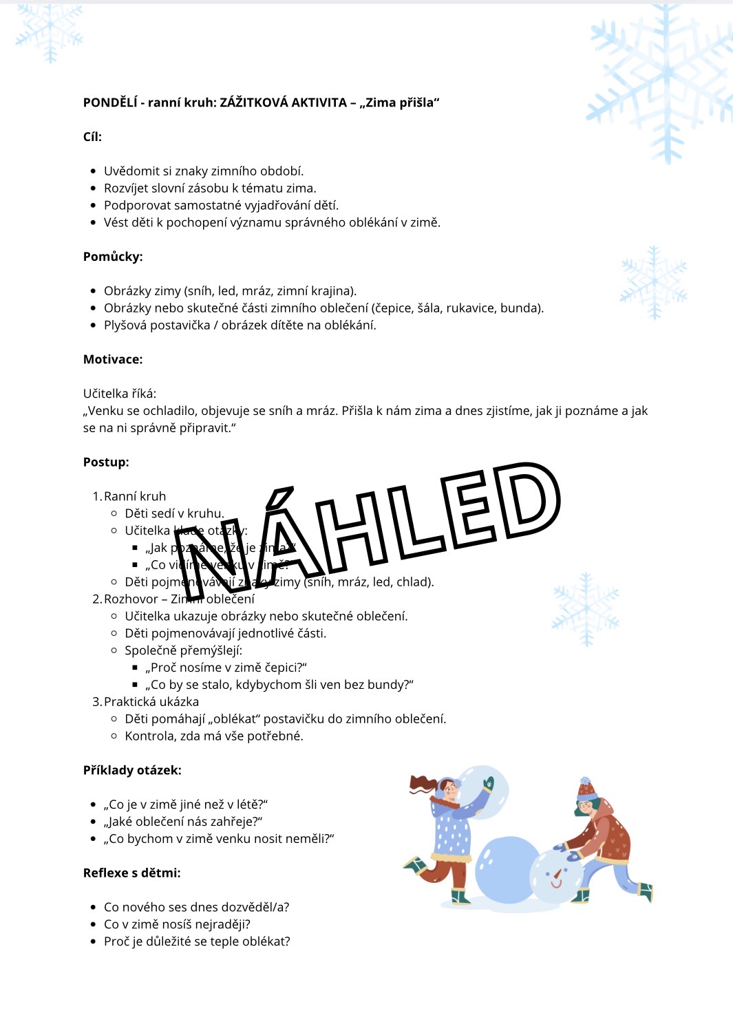 Vše je připraveno přehledně, srozumitelně a ihned k použití, s důrazem na radost, pohodu a respekt k potřebám dětí.