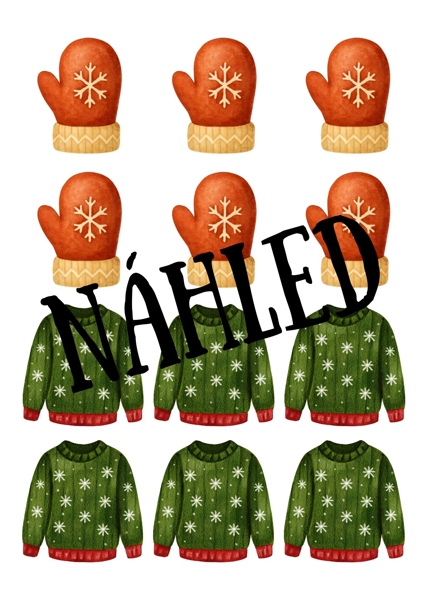 Seznam oblečení: zimní bunda, oteplovačky, svetr, čepice, šála, rukavice, zimní boty a ponožka.