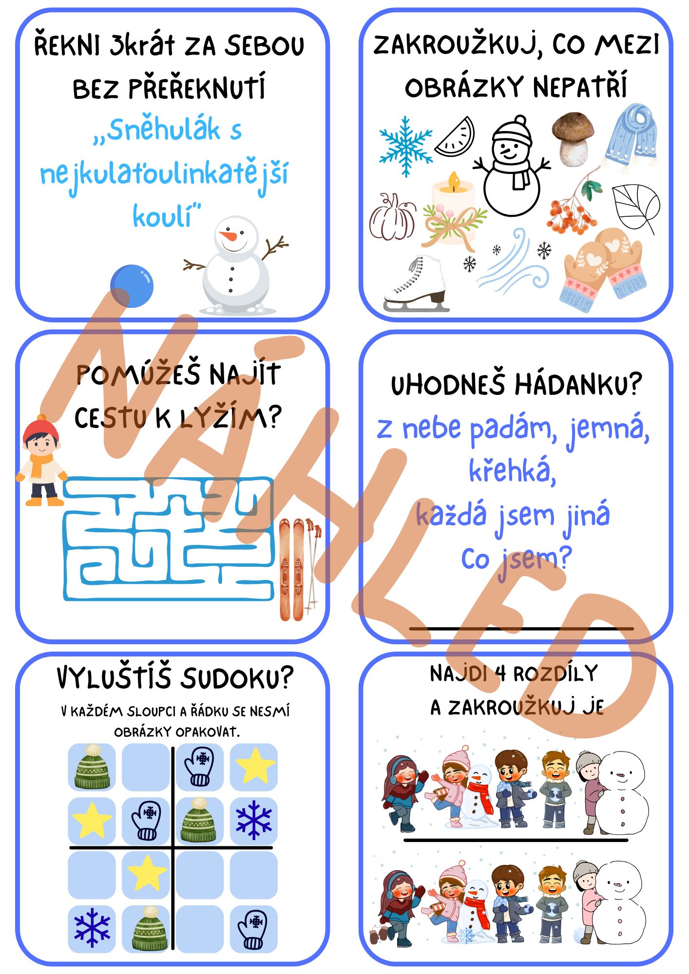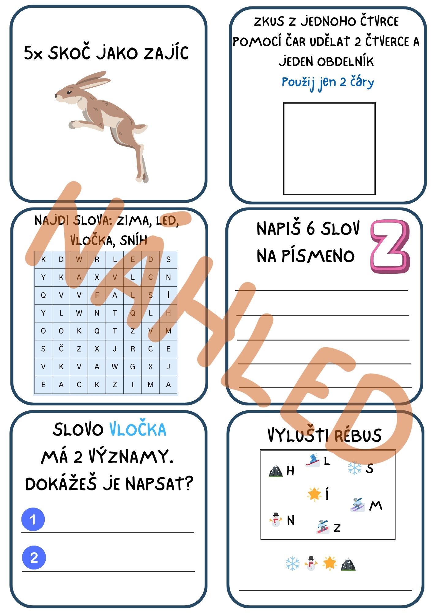 - 30 úkolů (pohybových, vědomostních...), plus jedna volná strana na Vaše úkoly.