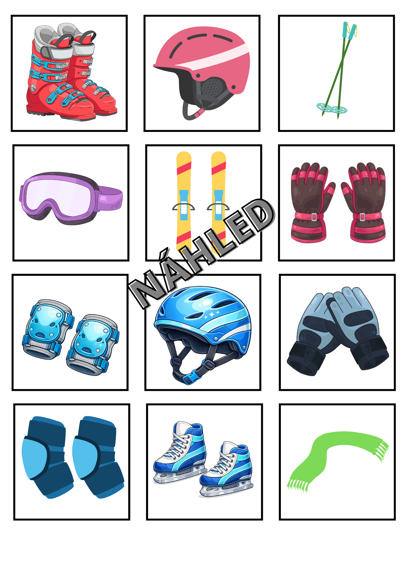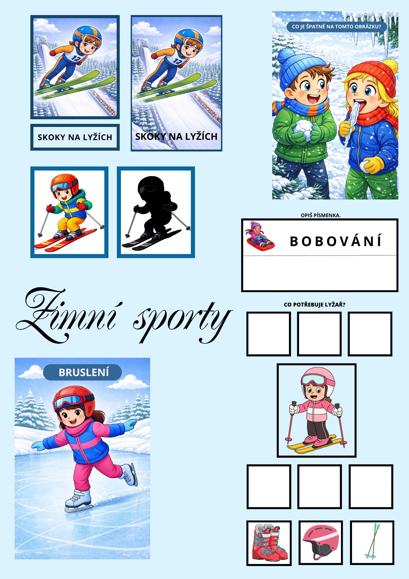- kartičky k přiřazování: Co potřebuje zimní sportovec ke svému sportu - bruslař, lyžař, krasobruslař, hokejista