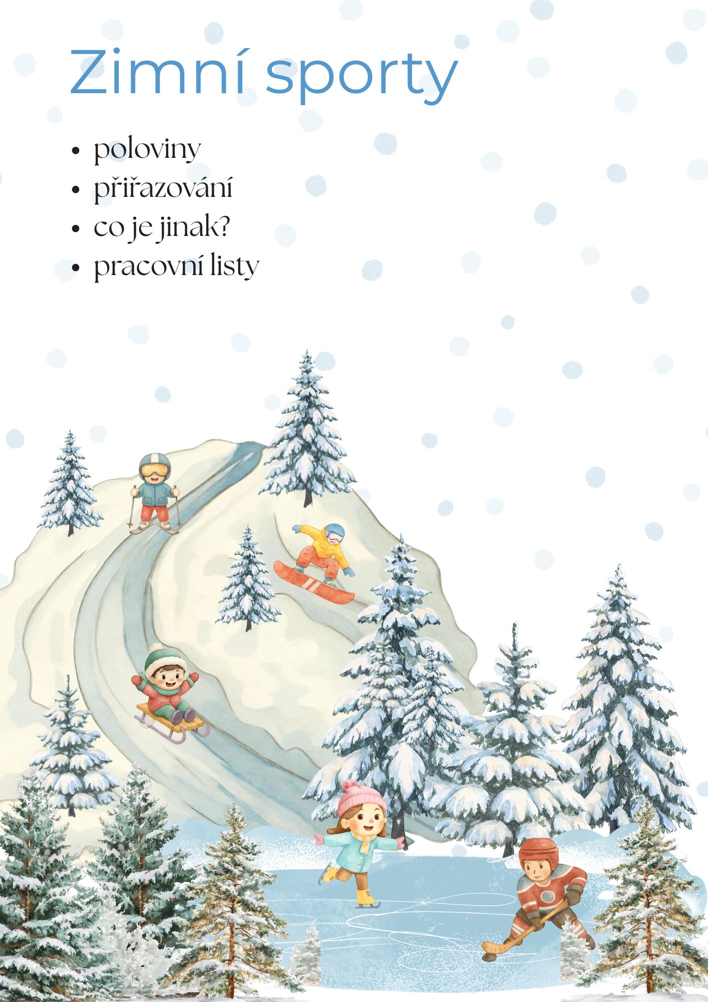 Soubor obsahuje aktivity k tématu zimní sporty. Najdete v něm přiřazování, pracovní listy a další úkoly.