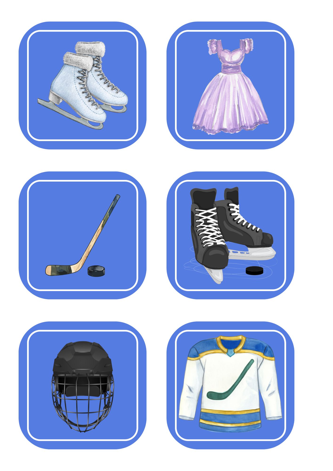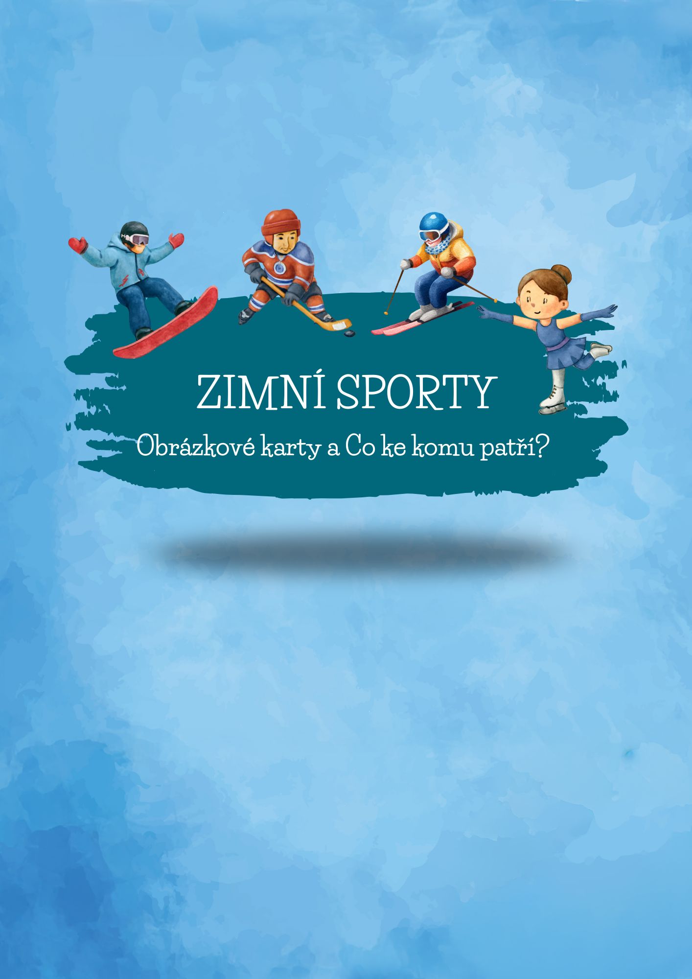 V souboru najdete obrázkové karty s různými zimními sporty a ke každému sportovci obrázky, co ke svému sportu potřebuje.