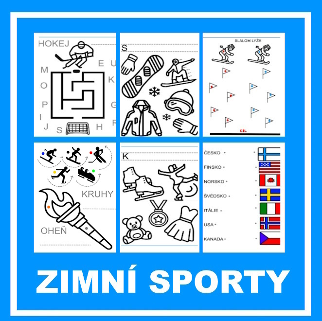 Omalovánky, spojovačky, vystřihovánka, lehké počítání a psaní, pexeso, tajenka, jemná motorika. Česká státní vlajka, další světové vlajky, medaile, seznámení s druhy zimních sportů, sportovní nářadí.