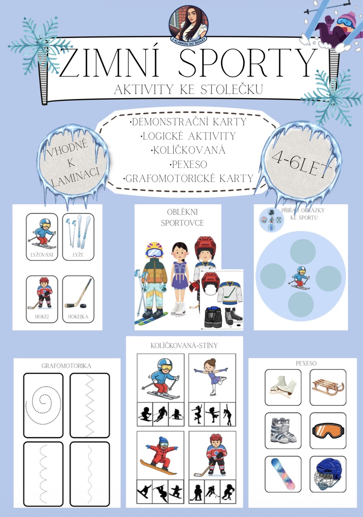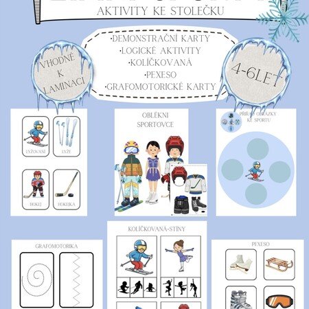 Didaktický materiál zaměřený na téma zimní sporty je vhodný pro děti ve věku 4-6 let.
