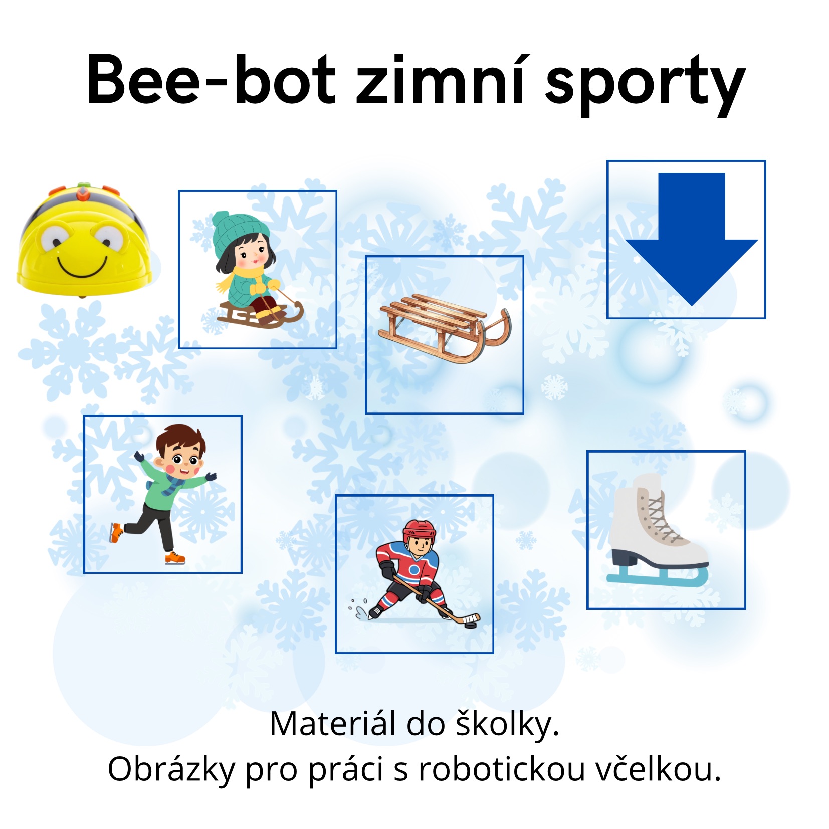 Zimní sporty bee-bot ❄️Materiál pro Bee-Bot 🐝 – zimní sporty 🎿🏂 Tento materiál obsahuje kartičky s motivy zimních sportů. 🏂⛷️⛸️Skvělý doplněk pro tematické aktivity s Bee-Botem 🩵