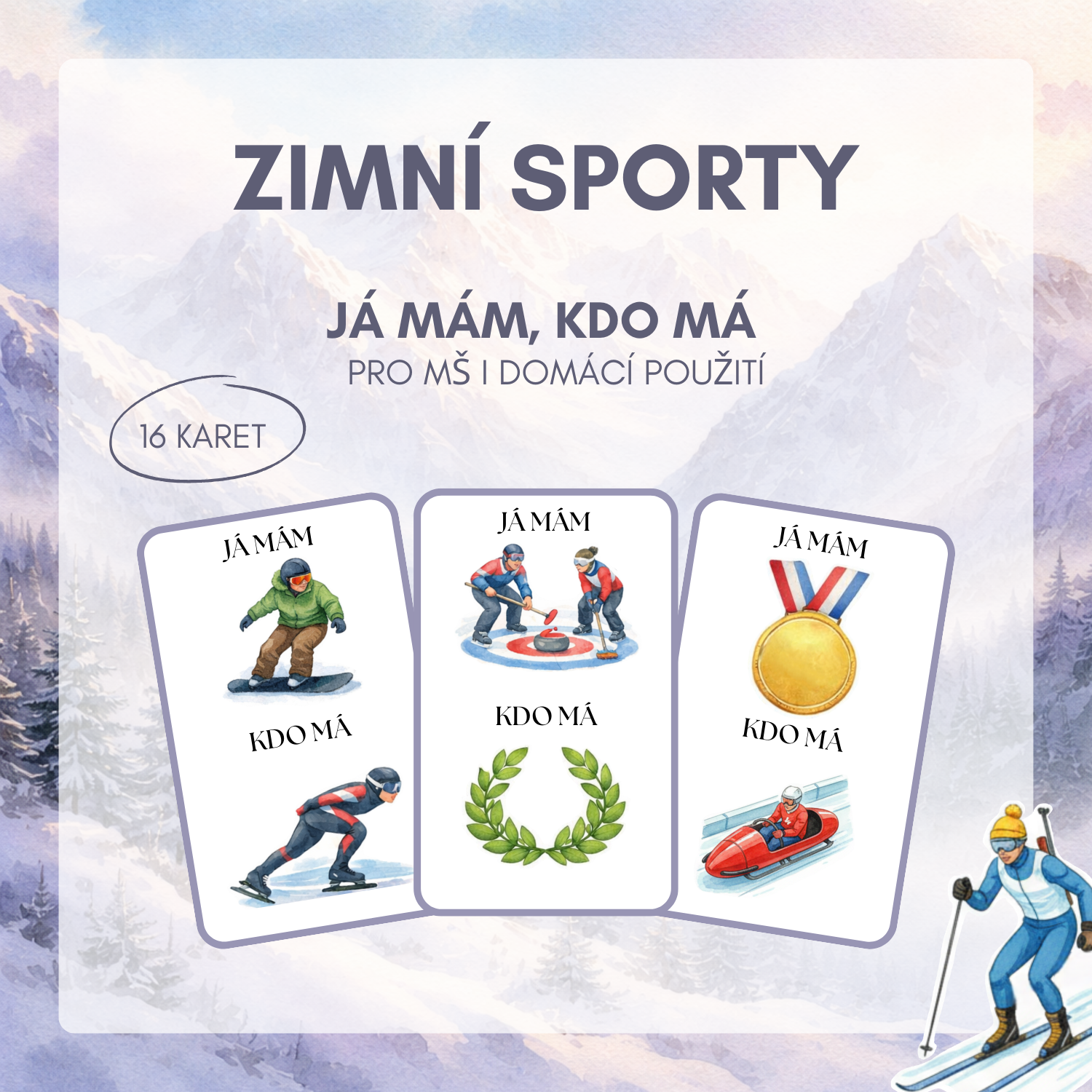 Hledáte promyšlený, hravý a pestrý materiál, který děti nejen zabaví, ale také je něco naučí? Přináším vám hru já mám, kdo má na téma zimní sporty, která vám ušetří čas a usnadní práci.