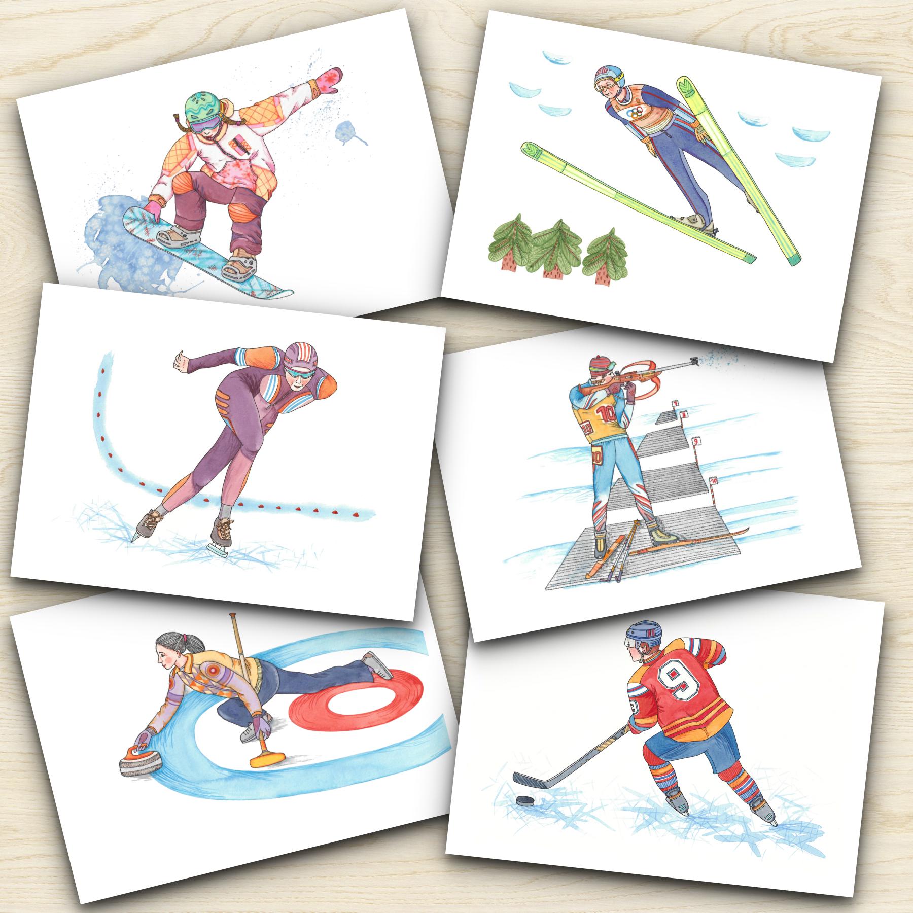 🫶 Kreslené demonstrační obrázky zimních sportů – ideální pro vysvětlení, inspiraci a další hry