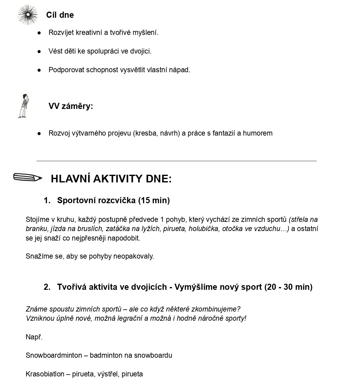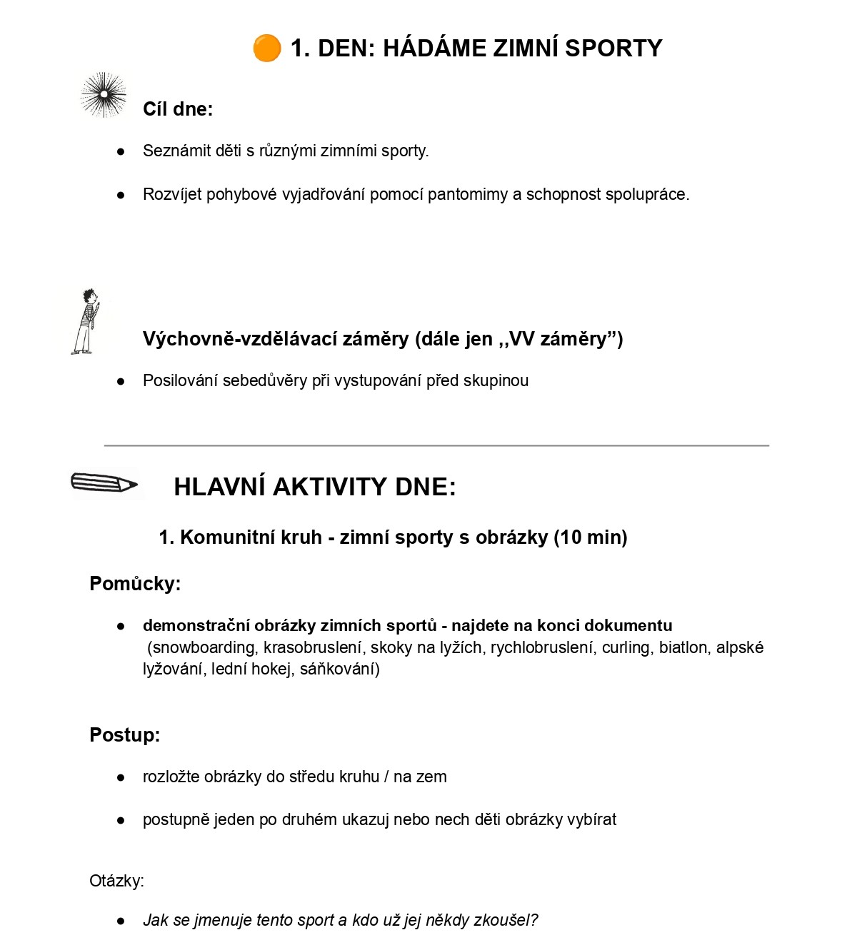 Týdenní plán „Zimní sporty“ obsahuje ucelený týdenní program aktivit pro děti 1.- 3- třídy.
