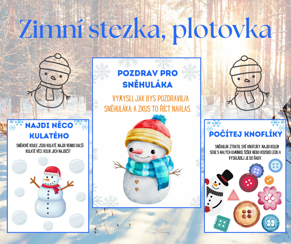 Připravte dětem zimní stezku plnou úkolů od našeho kamaráda Sněhuláka. Stezka je ideální na venkovní i vnitřní zábavu.