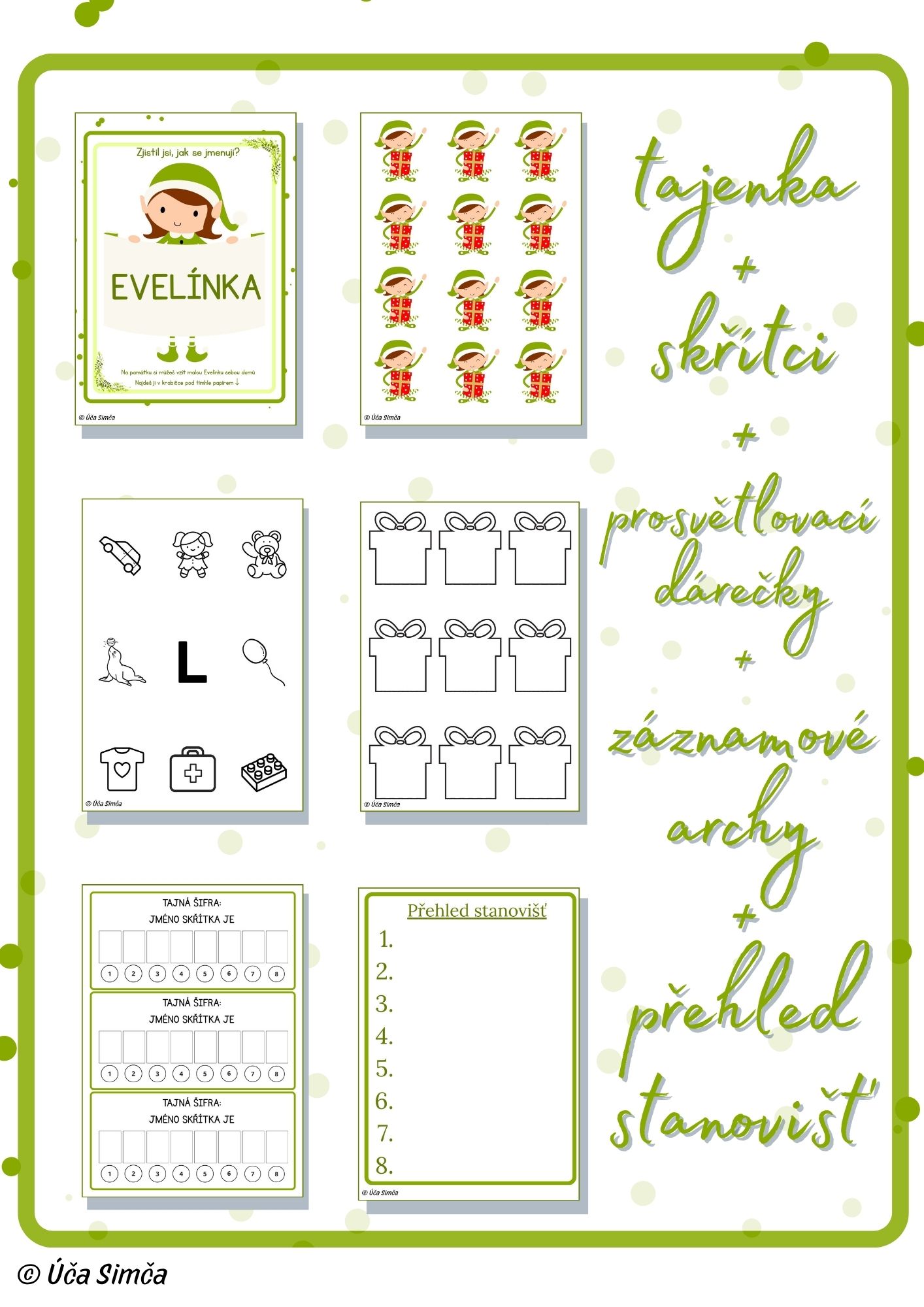 - skřítci (zalaminovaní), které si děti vezmou domů z krabičky na posledním stanovišti,