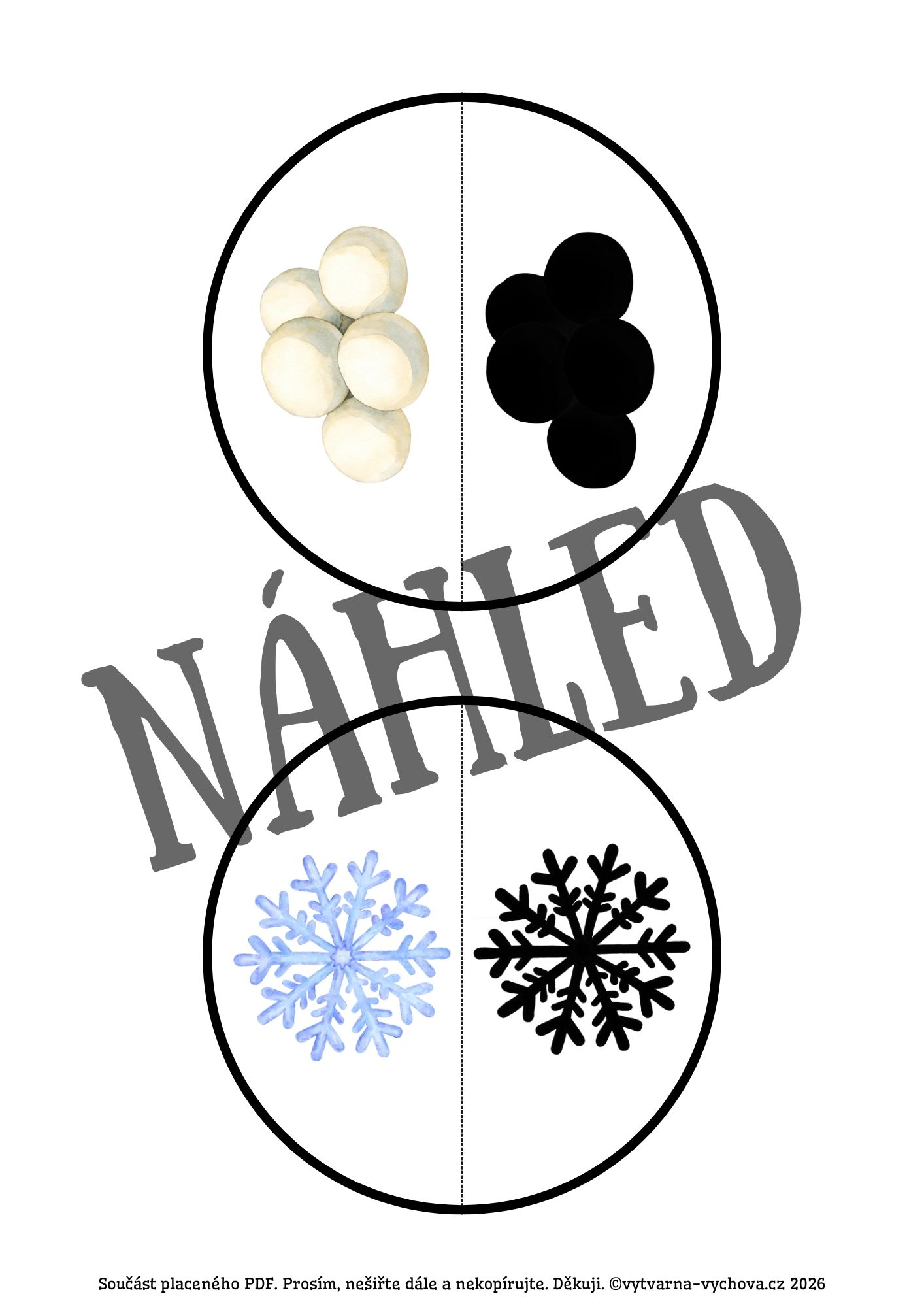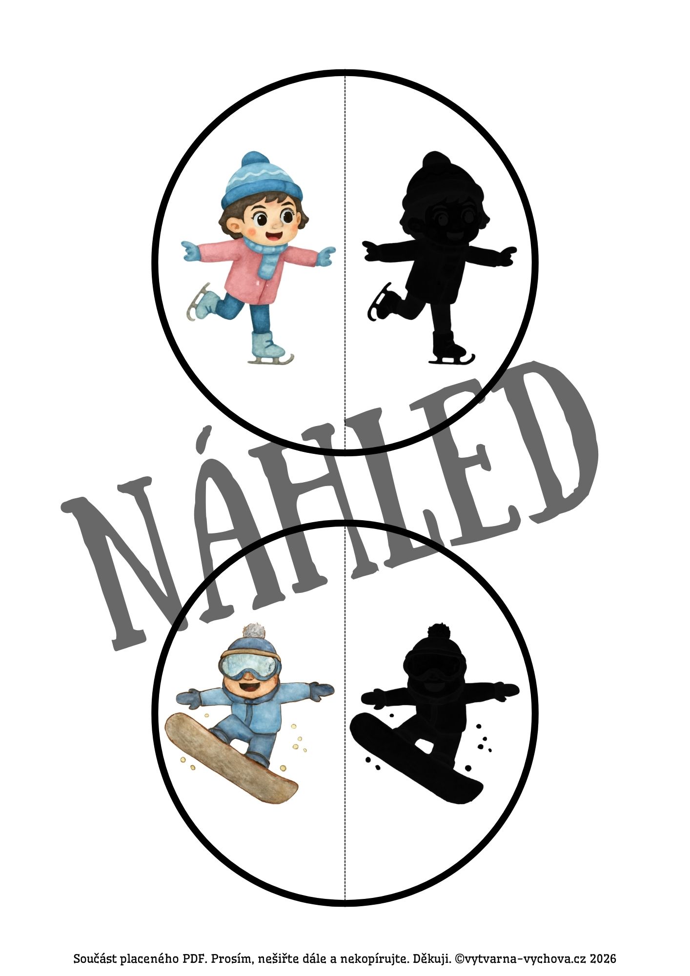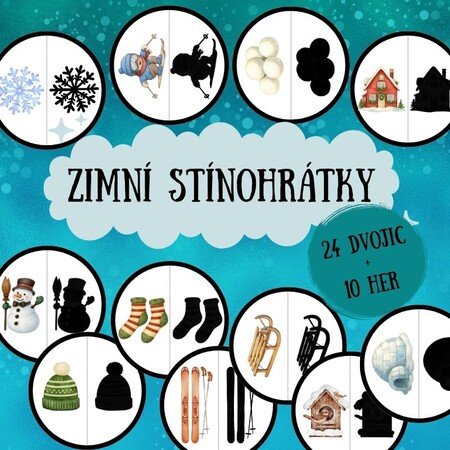 ❄️Soubor obsahuje 24 velkých kruhů (obrázek a jeho stín) s tematikou zimy+10 kolektivních her pro práci s materiálem. Univerzální „rostoucí materiál“, který se přizpůsobí věku i schopnostem dětí.