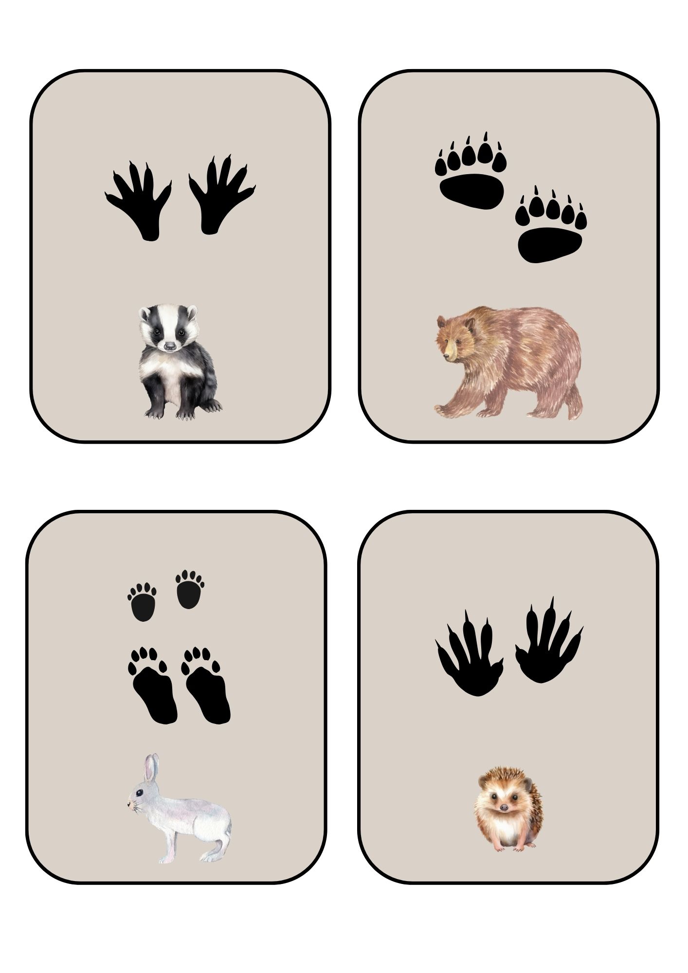 - Stopy zvířat - kartičky zobrazující zvíře a jeho typickou stopu