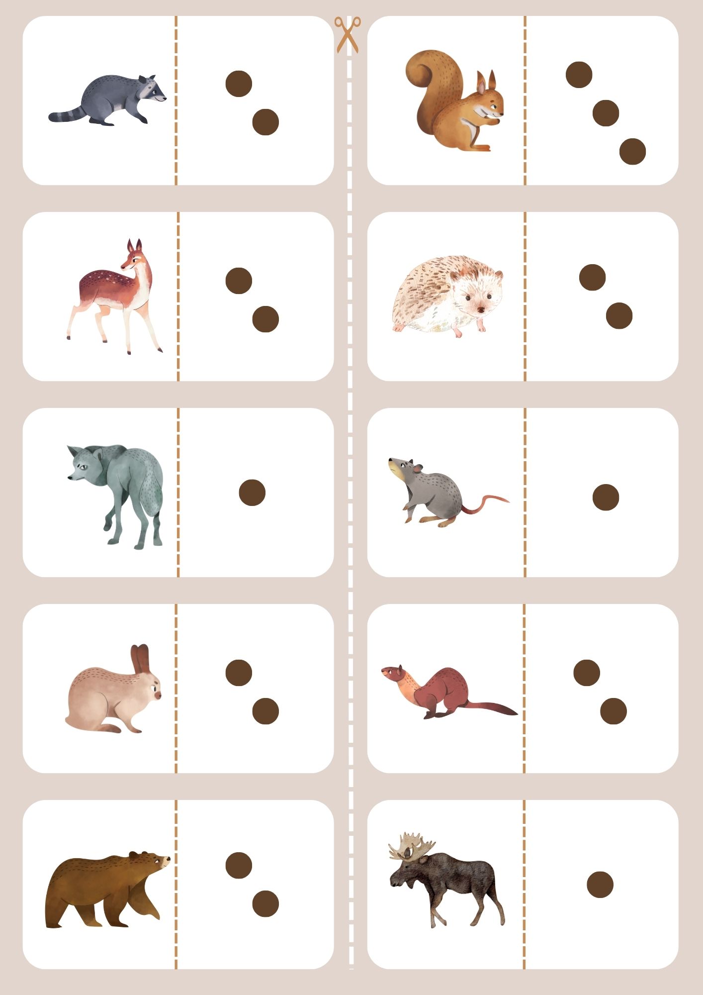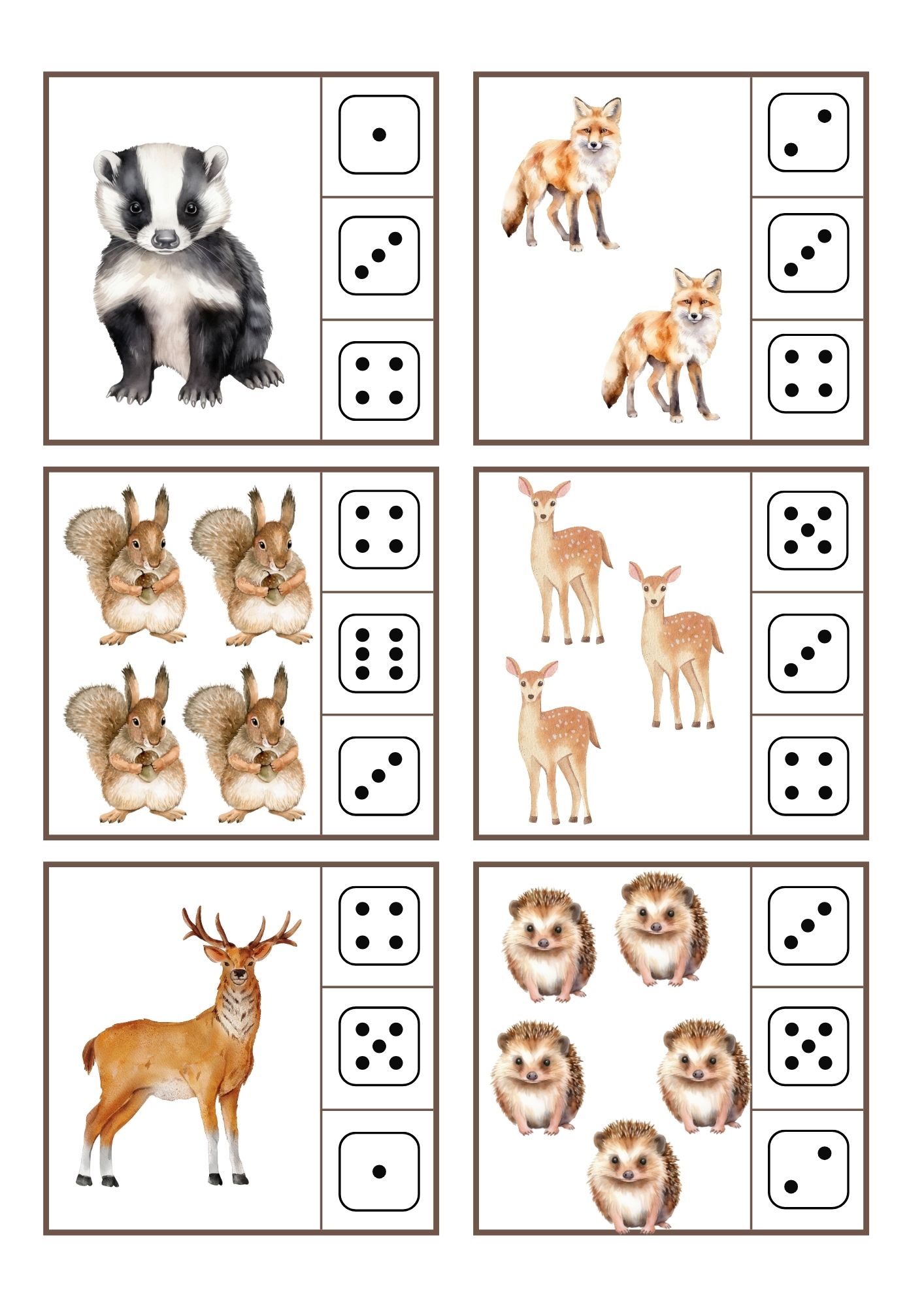 - Kolíčkování - přiřazování počtu teček na kostce k počtu zvířat
