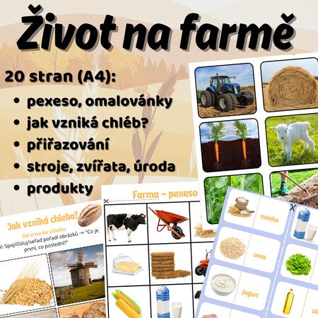 🎨 Tato originální sada 20 pracovních listů plná ilustrací, úkolů a zábavných aktivit přináší hravou cestu do života na farmě.