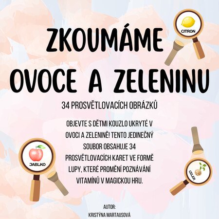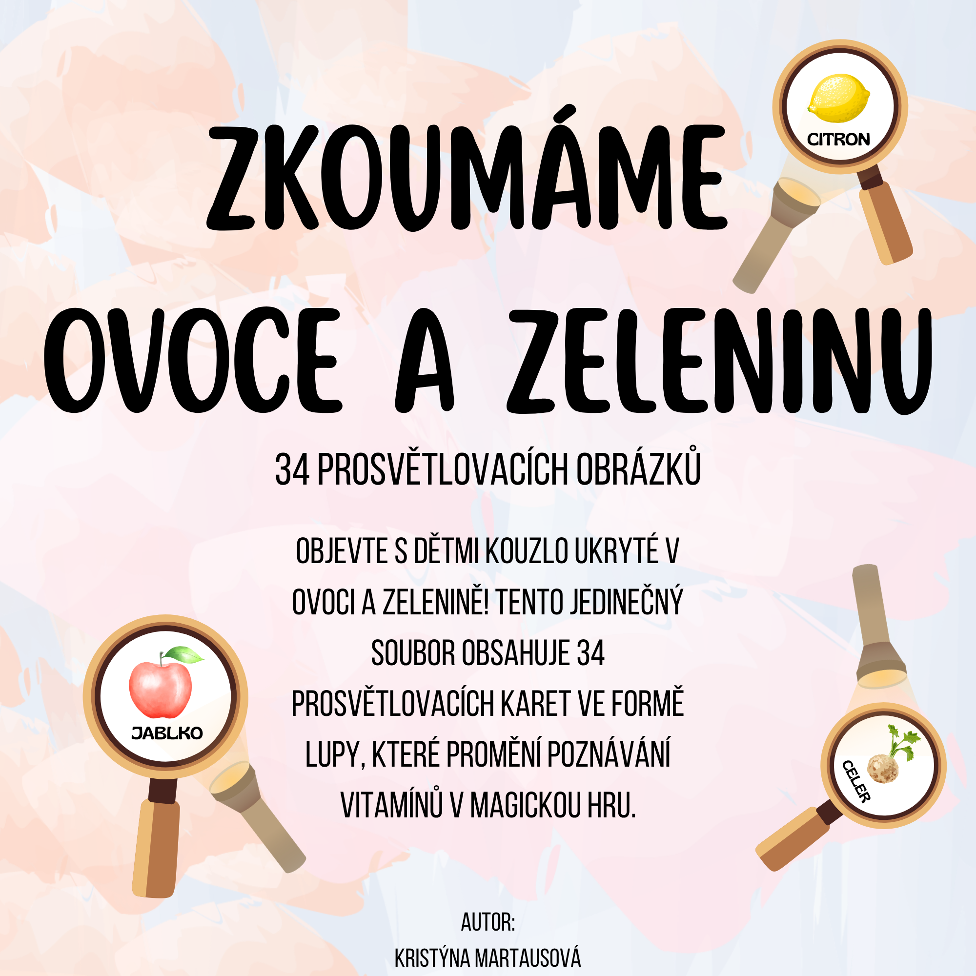 Objevte s dětmi kouzlo ukryté v ovoci a zelenině! Tento jedinečný soubor obsahuje 34 prosvětlovacích karet ve formě lupy, které promění poznávání vitamínů v magickou hru.