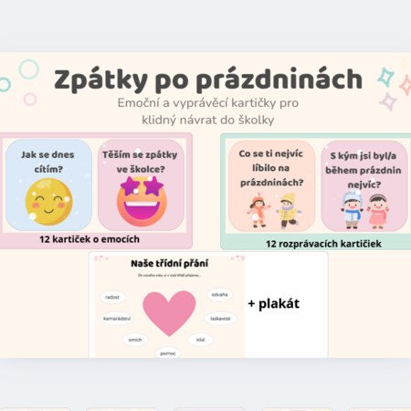 Po zimních prázdninách se děti často vracejí do školky/školy plné zážitků a různých pocitů. Abychom jim pomohli bezpečně a klidně se adaptovat, připravila jsem jednoduché kartičky, které podporují: