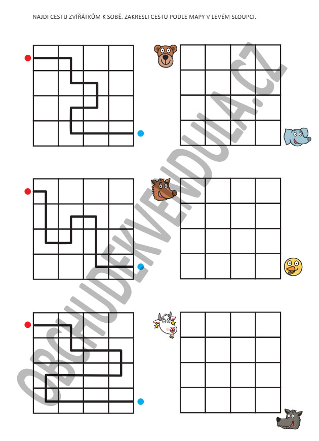 Orientaci v prostoru a na ploše – děti systematicky prohledávají obrázkovou mřížku.