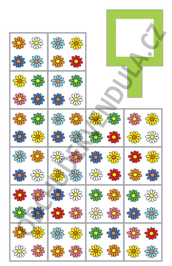 Vizuální paměť – musí si zapamatovat kombinaci z kartičky a hledat ji v ploše.